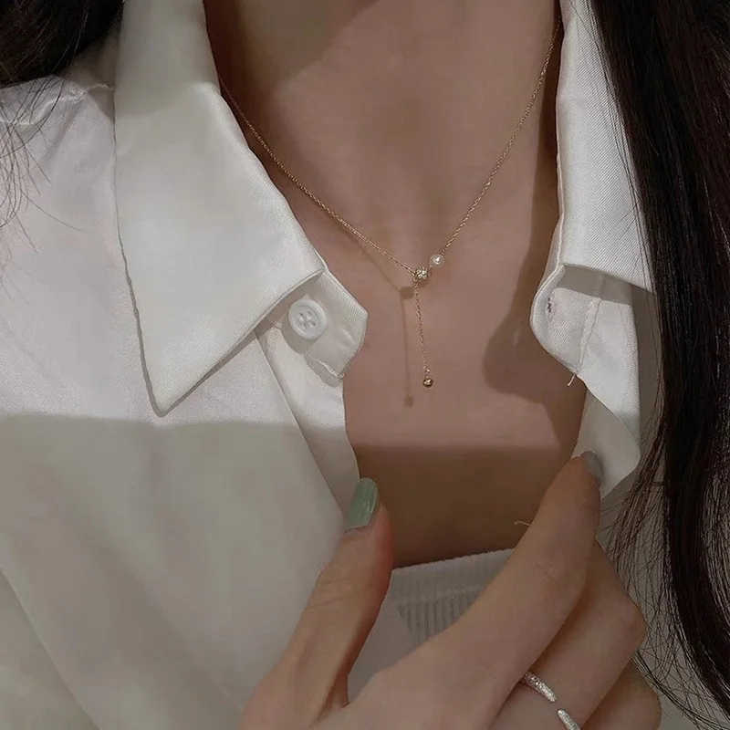 Simple Kpop Pearl Crystal Charm Pendant Necklace Gold Color Chain Choker Necklace Women Jewelry 2021 Collar