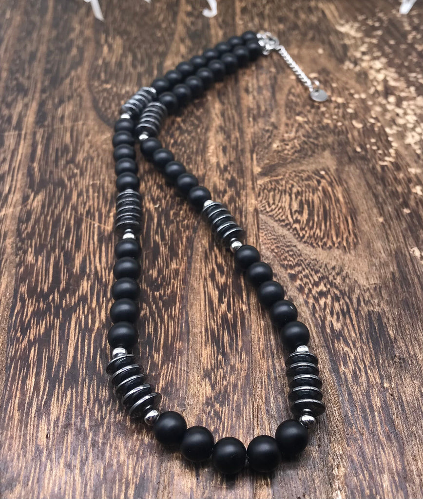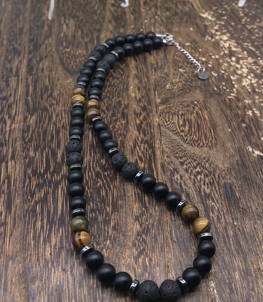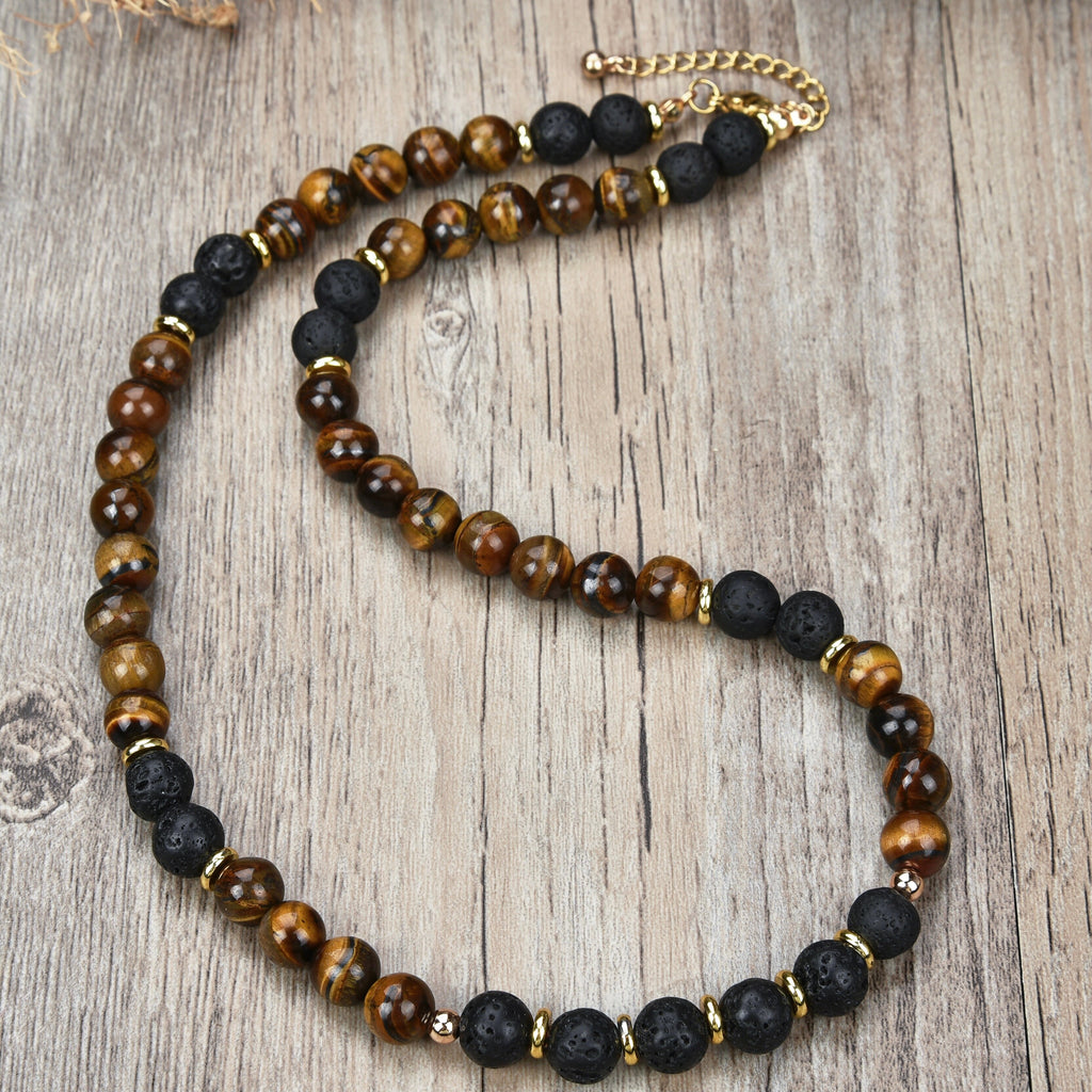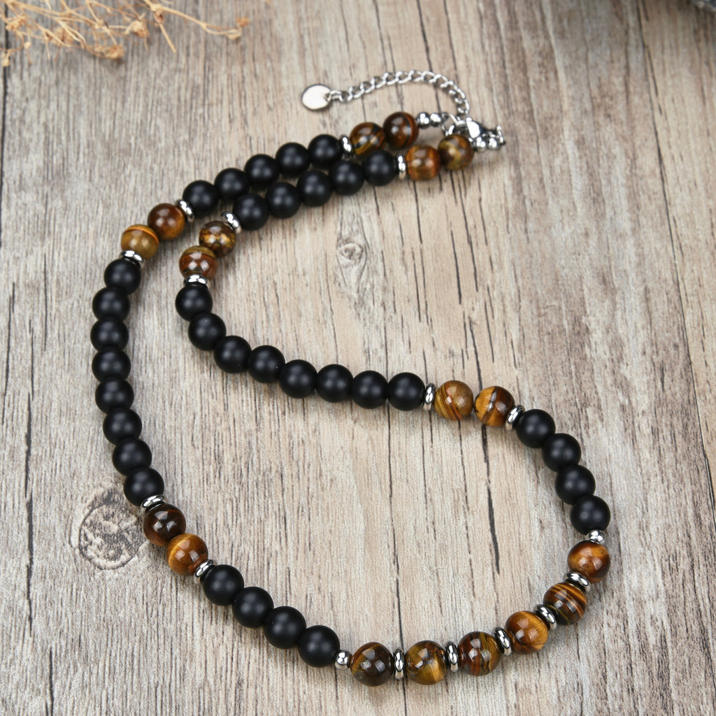simple natural stone beads black gallstone necklace men and women short chain 316 stainless steel jewelry