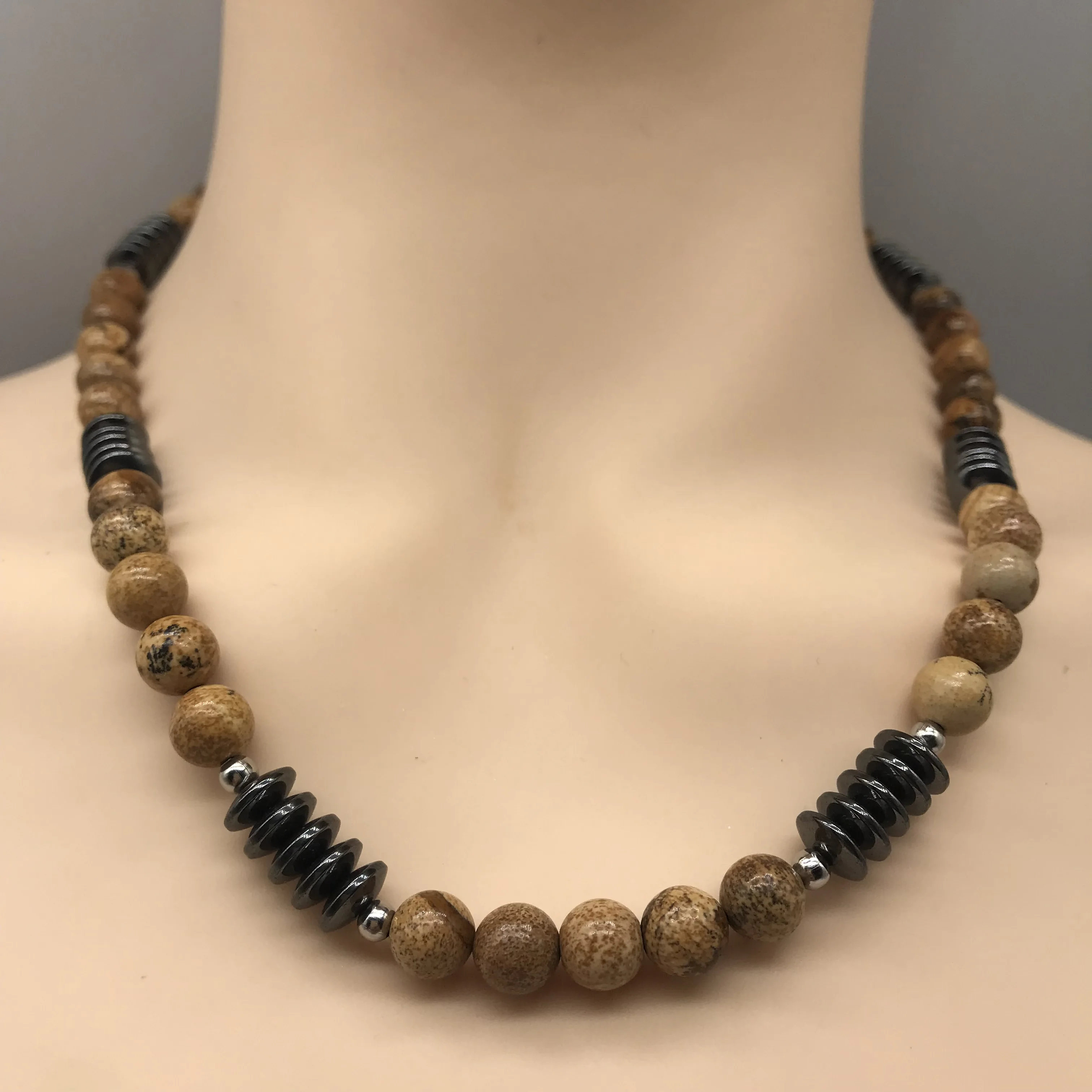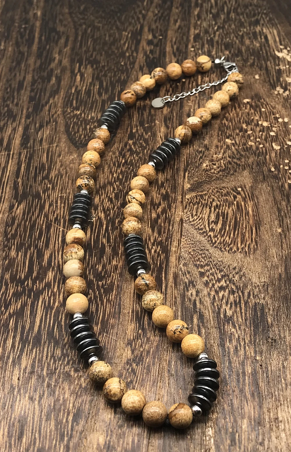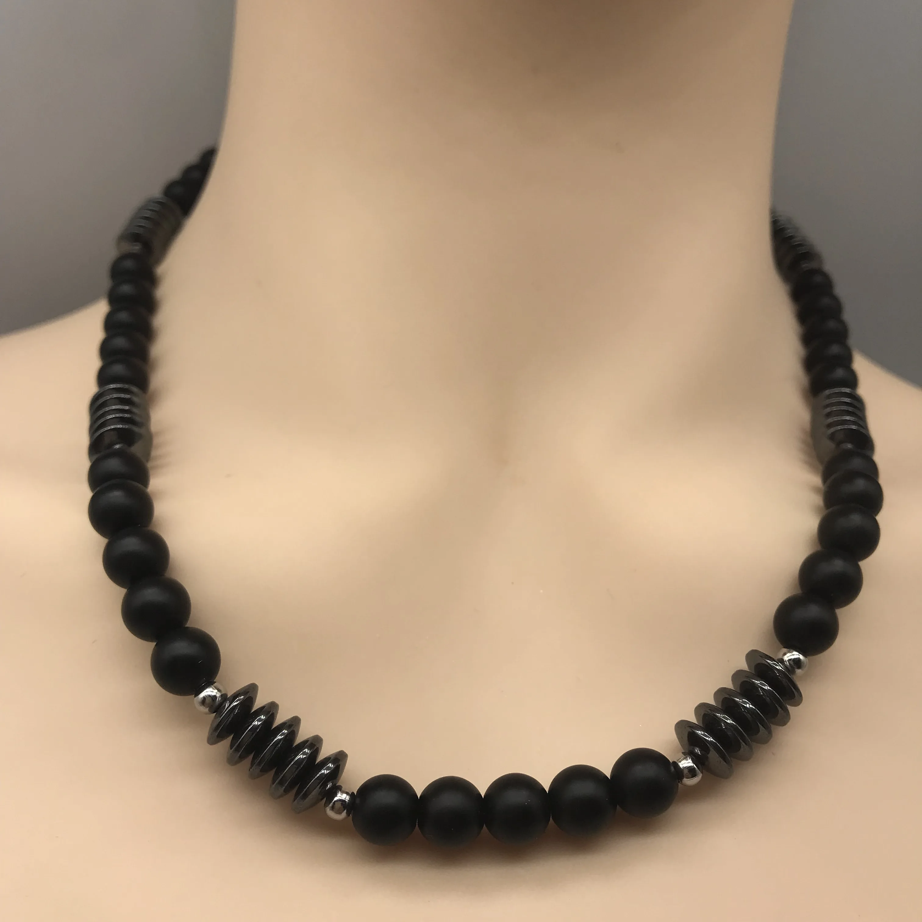simple natural stone beads black gallstone necklace men and women short chain 316 stainless steel jewelry