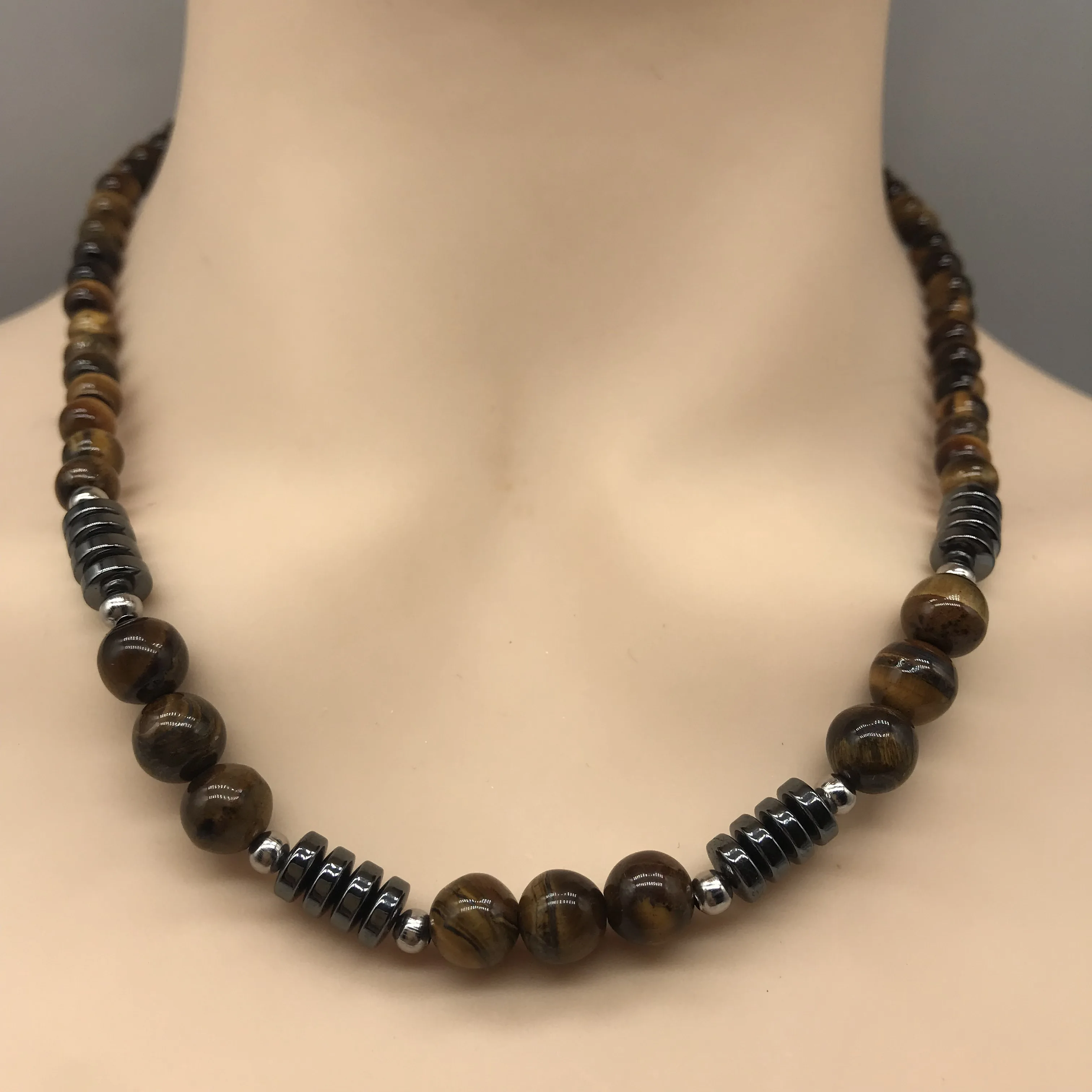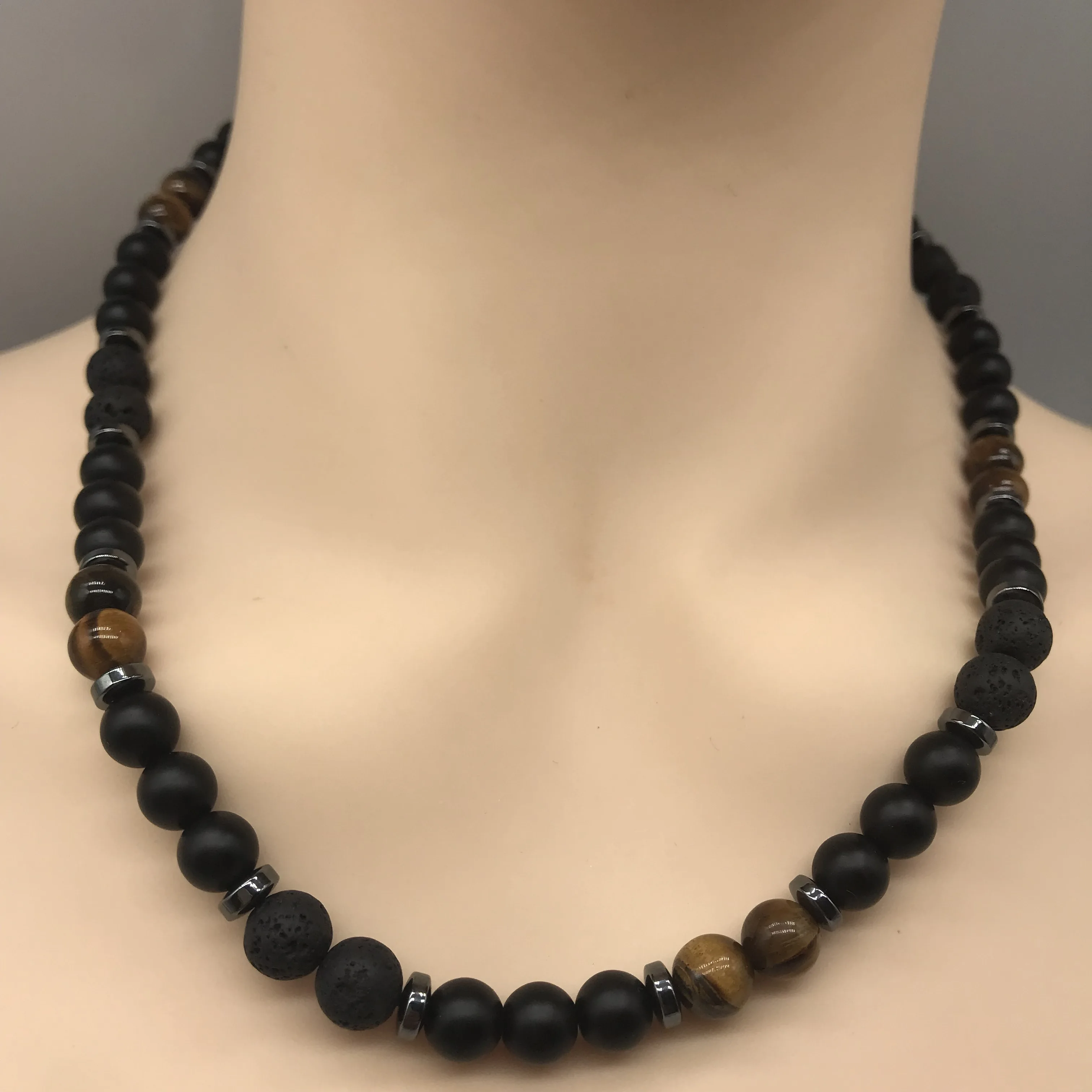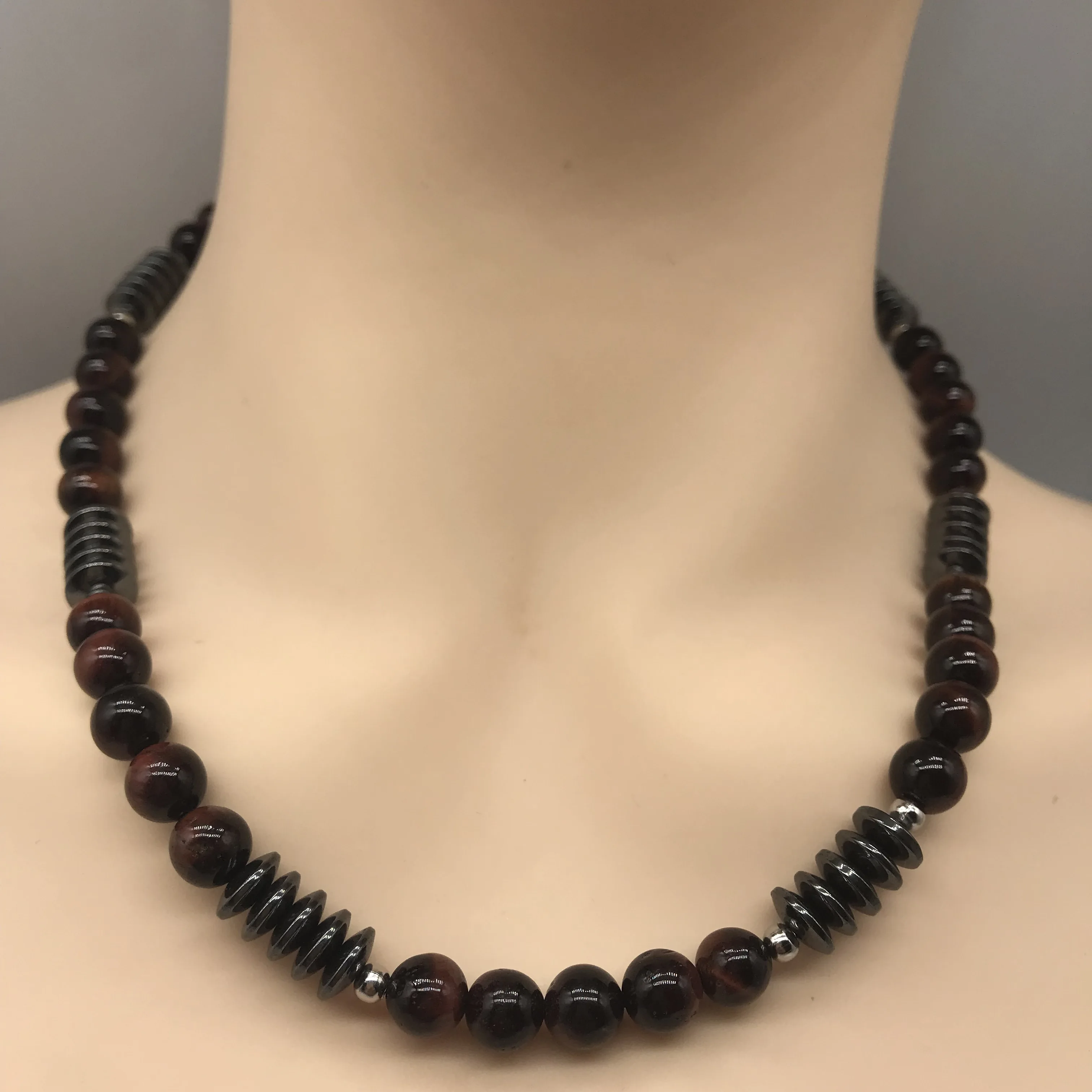 Red tiger eye stone and black gall stone : Fashion new necklace