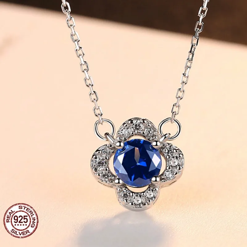 Simple Snowflake Genuine Blue Topaz Solid 925 Sterling Silver Pendant Fine Jewelry Does Include Chain For Women On Sale Necklace