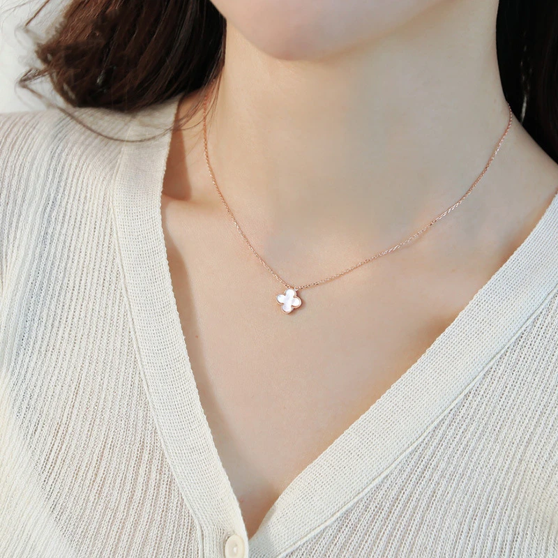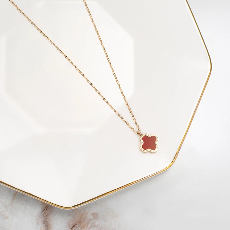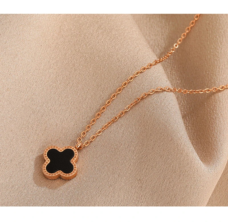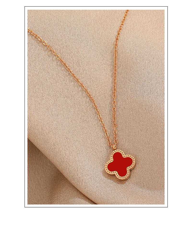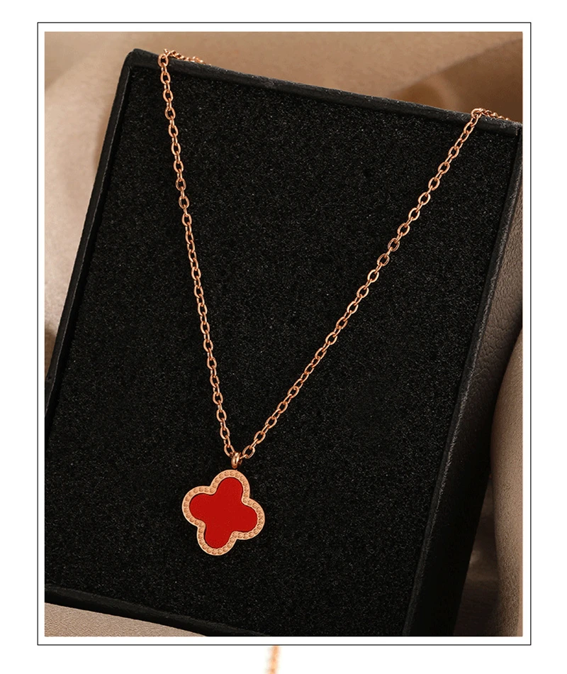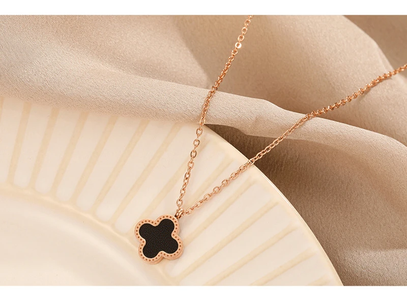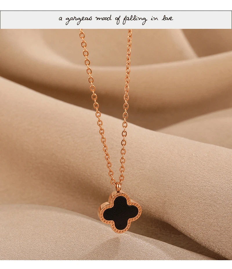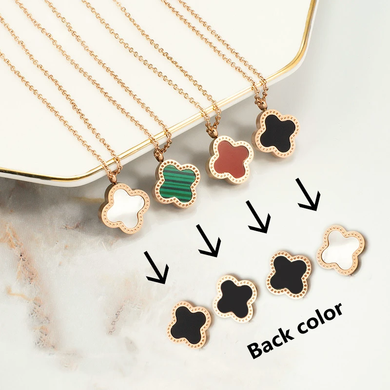 Simple Souble-Sided Stainless Steel Four Leaf Clover Necklace Female Jewelry Classic Shell Lucky Pendant Necklace Accessories