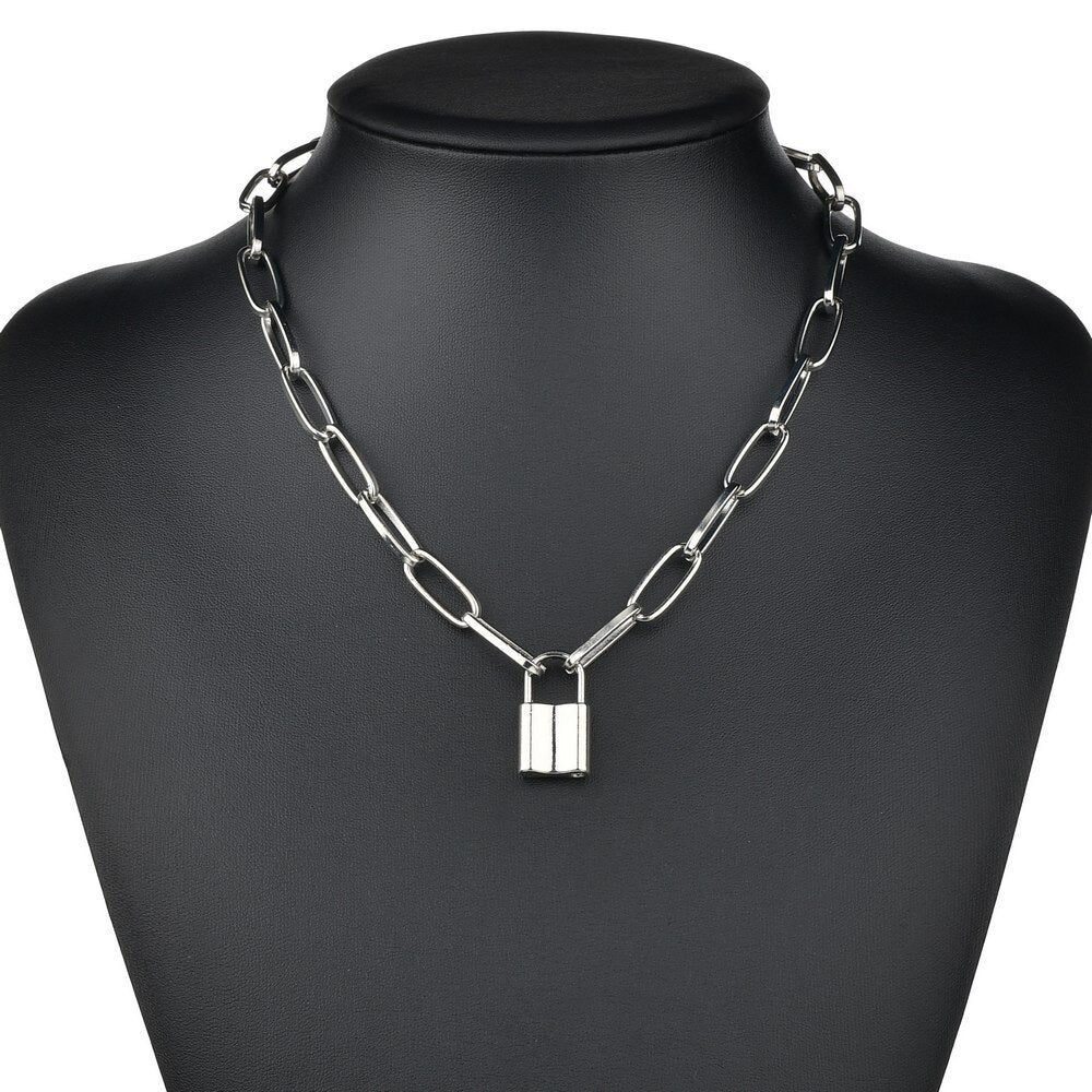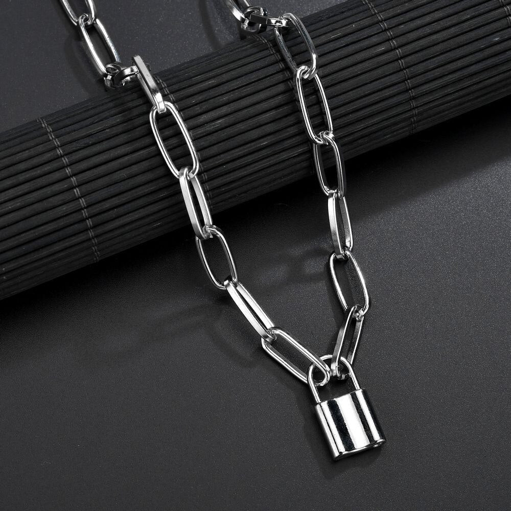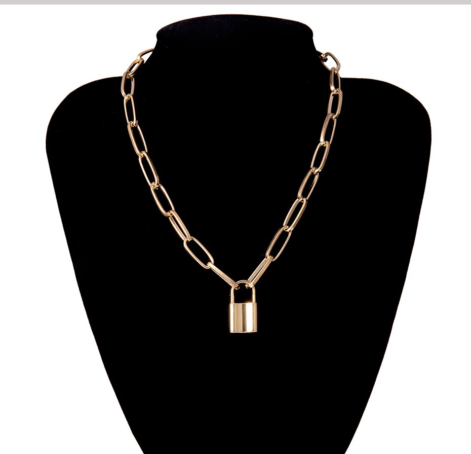 Simple Square Gold Lock Necklace Pendant Necklace Punk Sweater Long Chain Neck Hip Hop Lock Women Goth Jewelry 2021