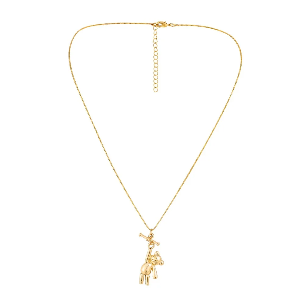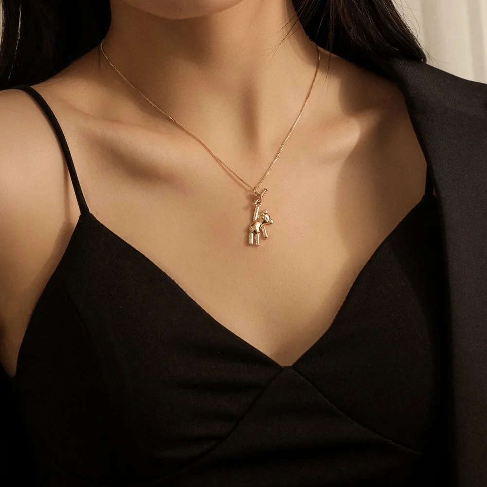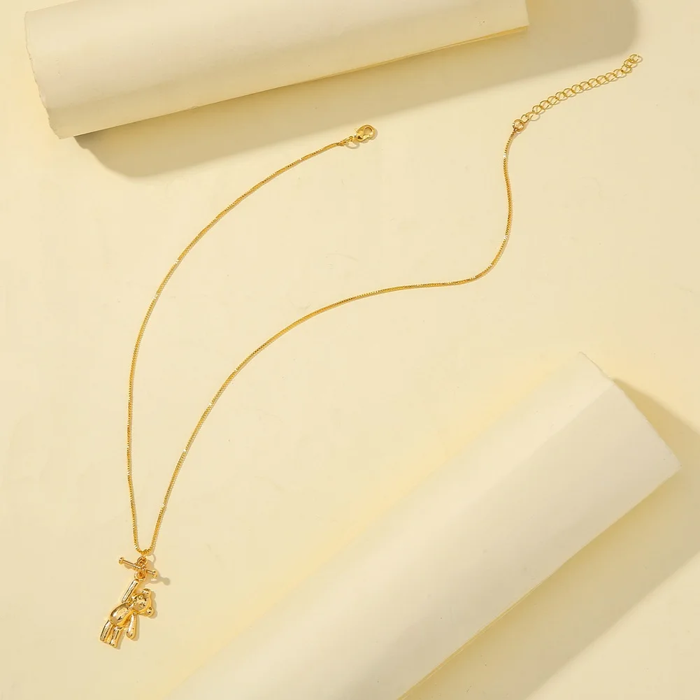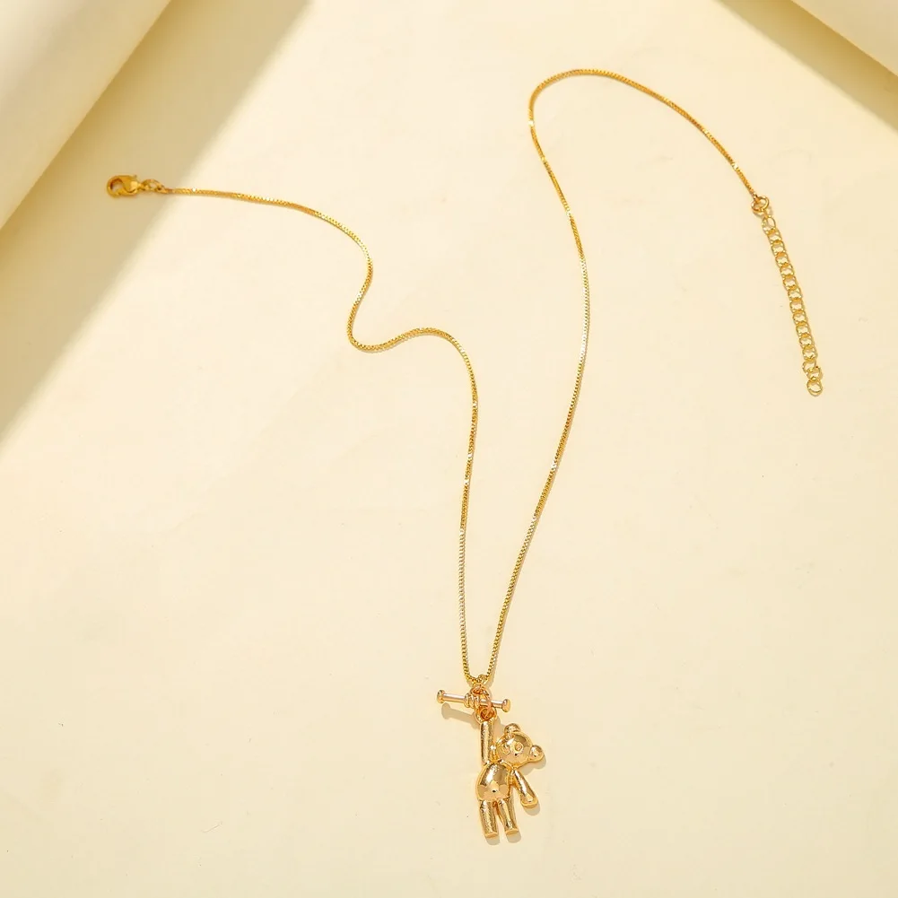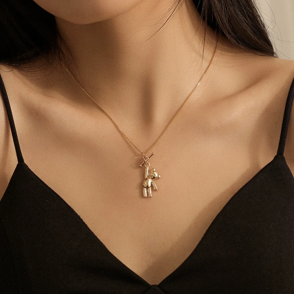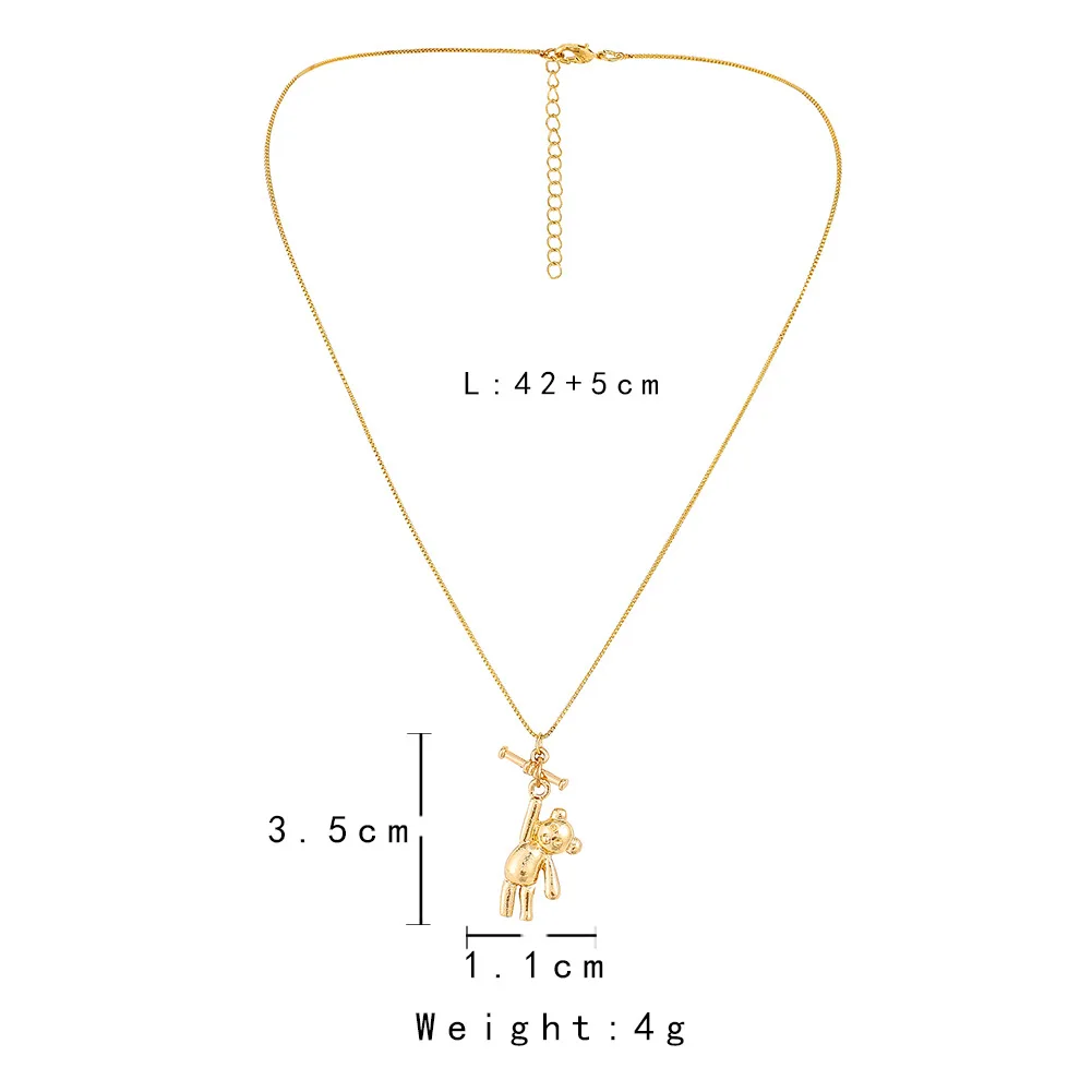 Simple Trendy Hand-made Exquisite Personality Cute Weightlifting Bear Pendant Choker For Women Charm Jewelry Gifts