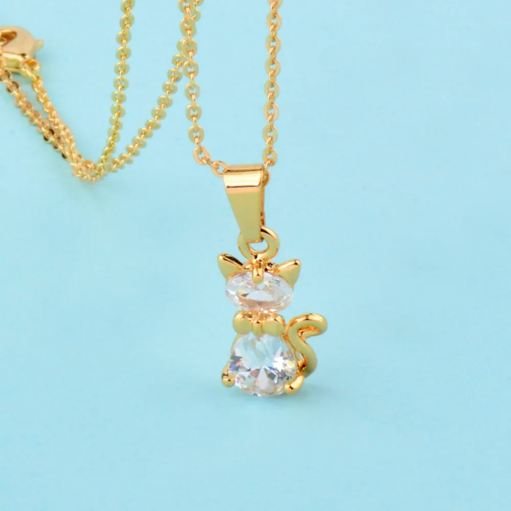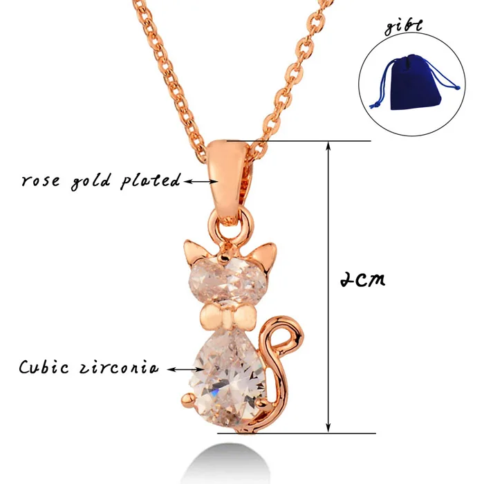 Charm White Cubic Zircon Cat Animal Pendant Necklace For Women Rose Gold Color Chain Jewelry Gifts Xl534