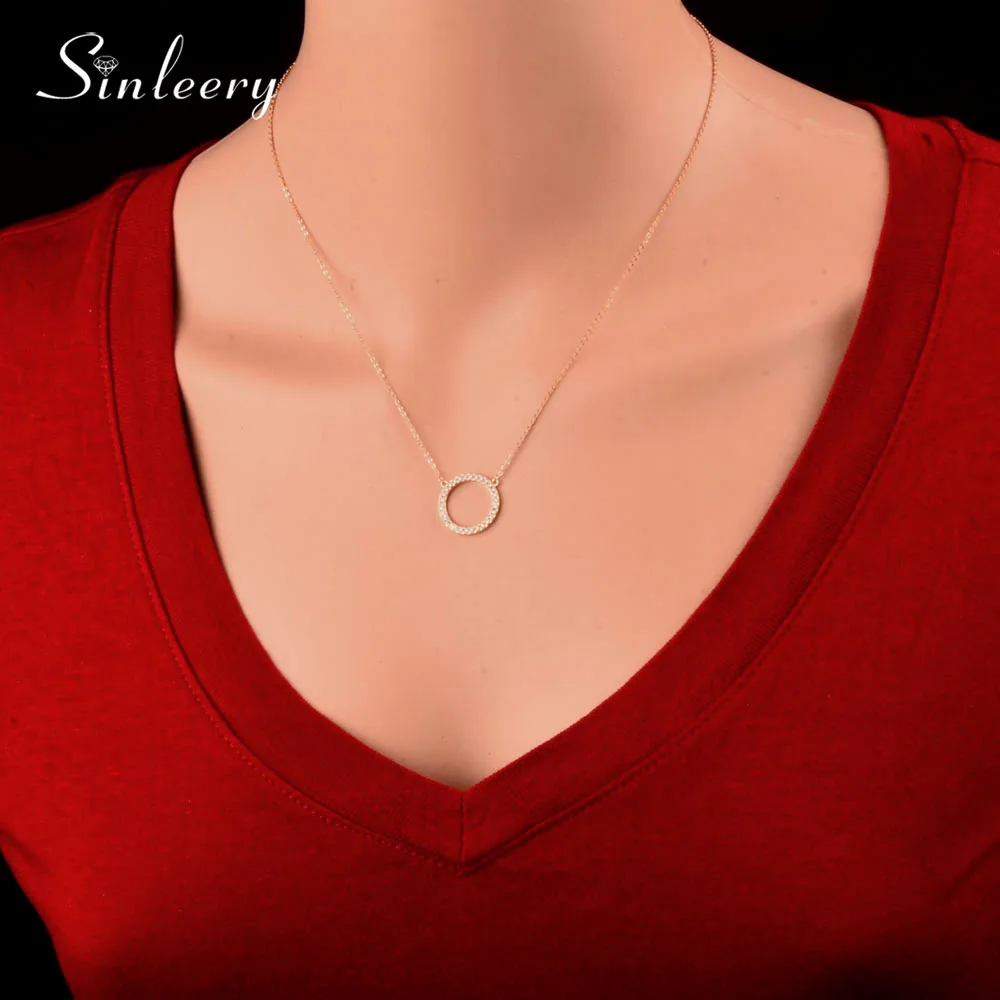 Shiny Paved Tiny Crysral Circle Round Necklaces & Pendants Silver/Rose Gold Color Chain Jewelry For Women XL089 SSB
