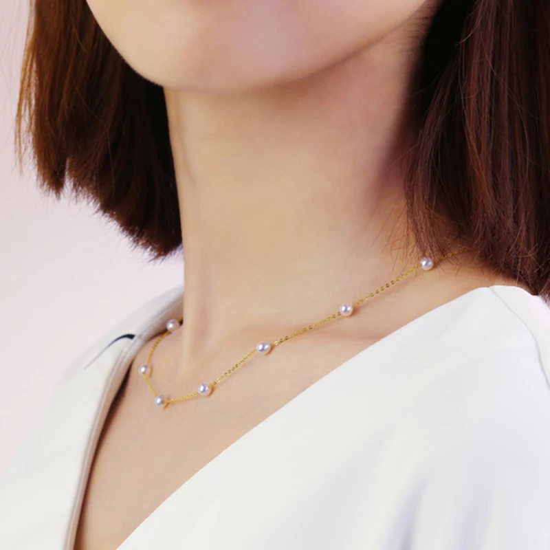 Trendy 18k AU750 gold necklace pearls star family design choker fine jewelry for women Mum lover girls in party