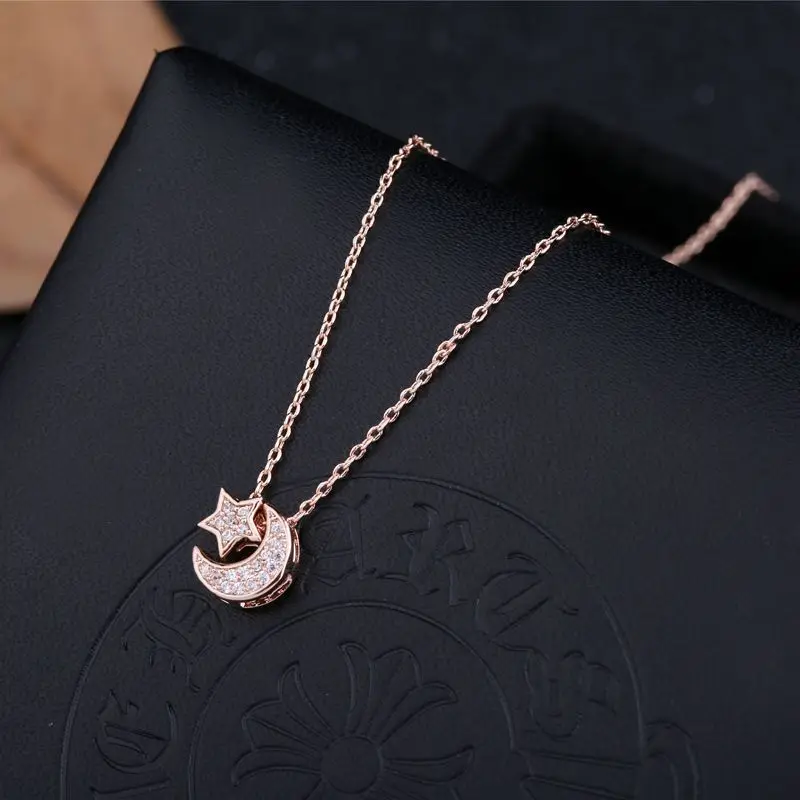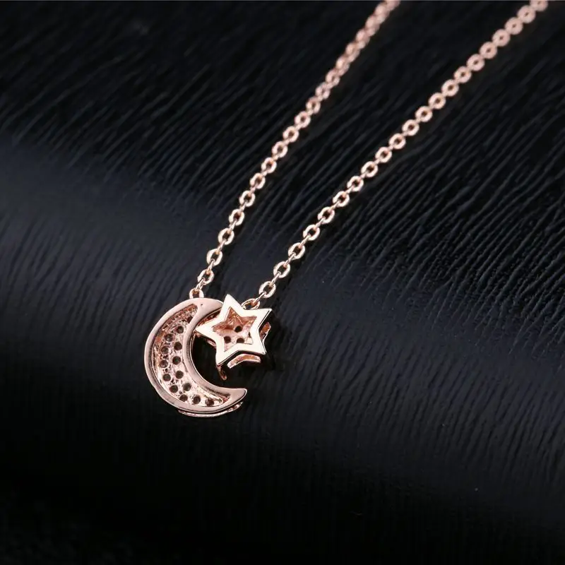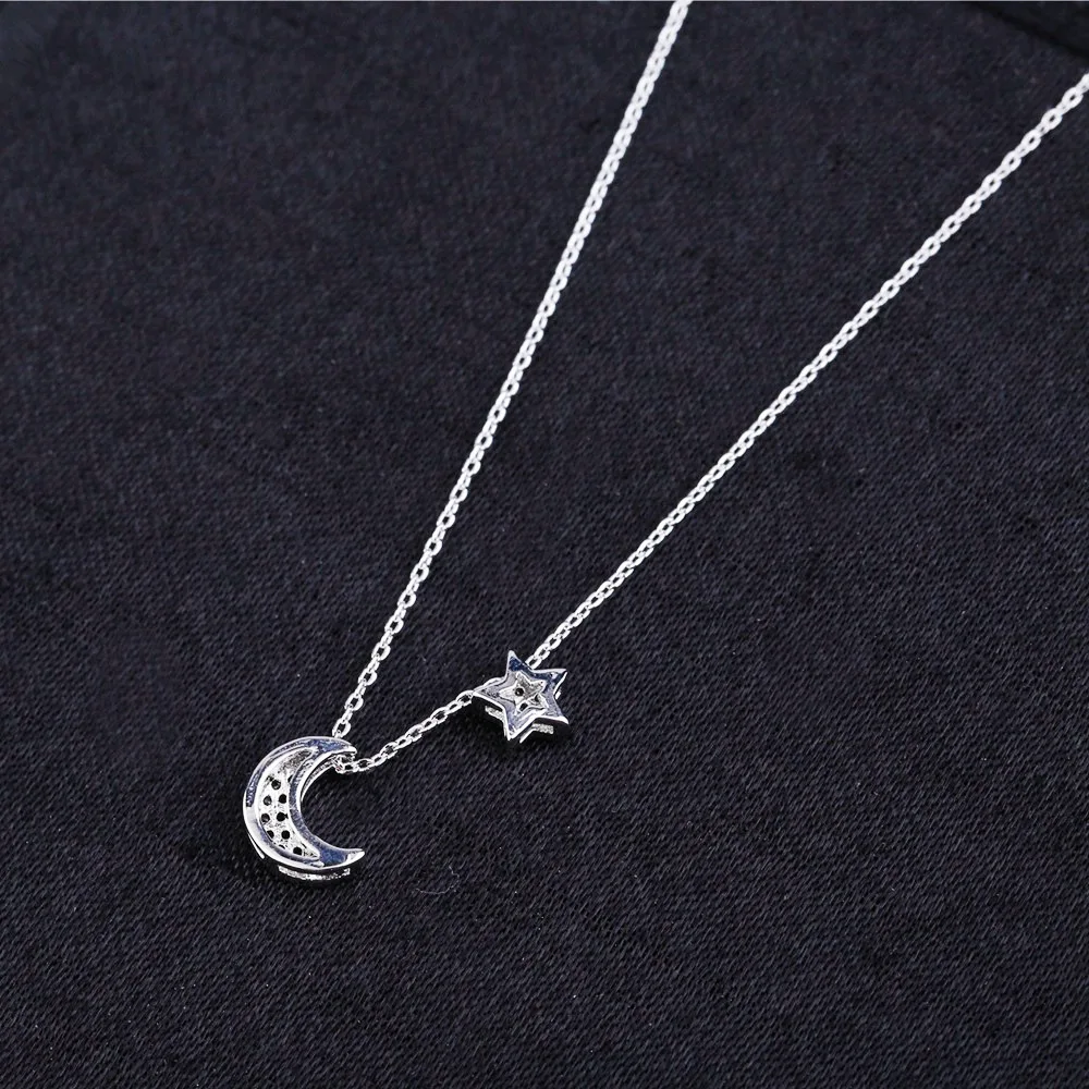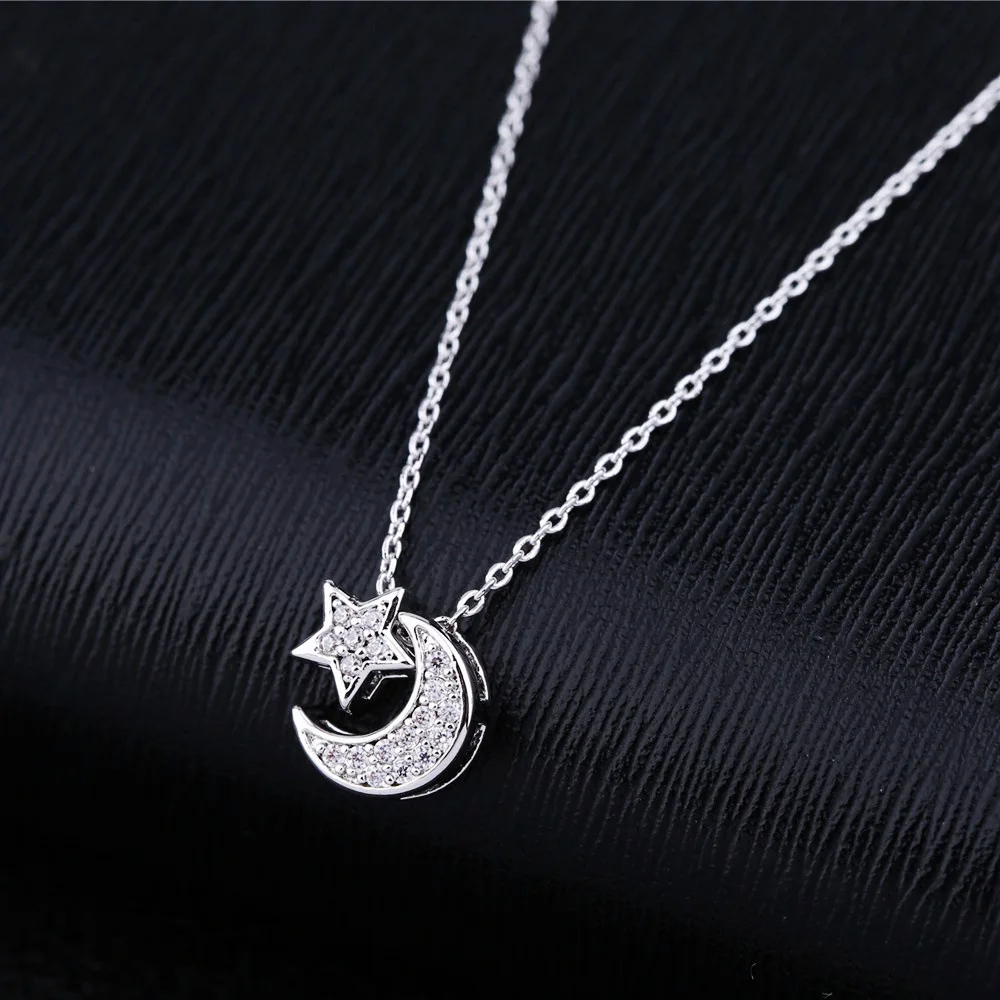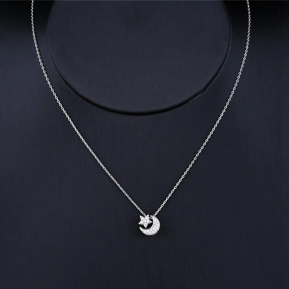 SIPENGJEL Trendy Inlaid Zircon Dainty Moon Star Pendant Necklace Simple Korean Style Chain Necklaces For Women Fine Jewelry 2021