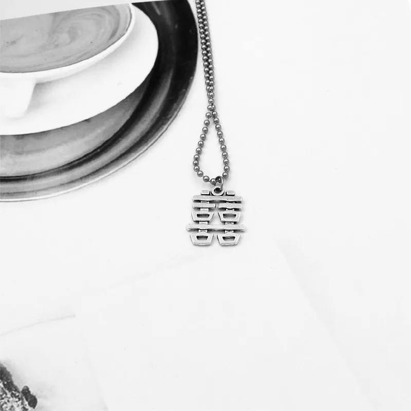 size 2.4*2.7*0.17cm ethnic Chinese character xi pendant necklaces means happiness unisex jewelry beads chain drop ship ok di010