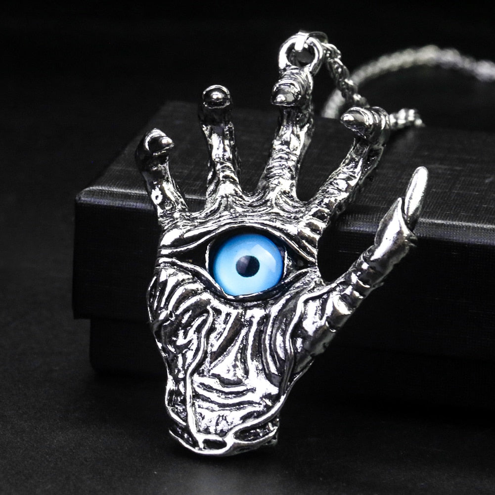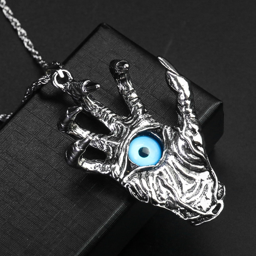 Skeleton Fiend Blue Evil Eye Necklace Dragon Eye Monster Claws Wizard Magic Satan Stainless Steel Chain Hand Man Pendant Jewelry