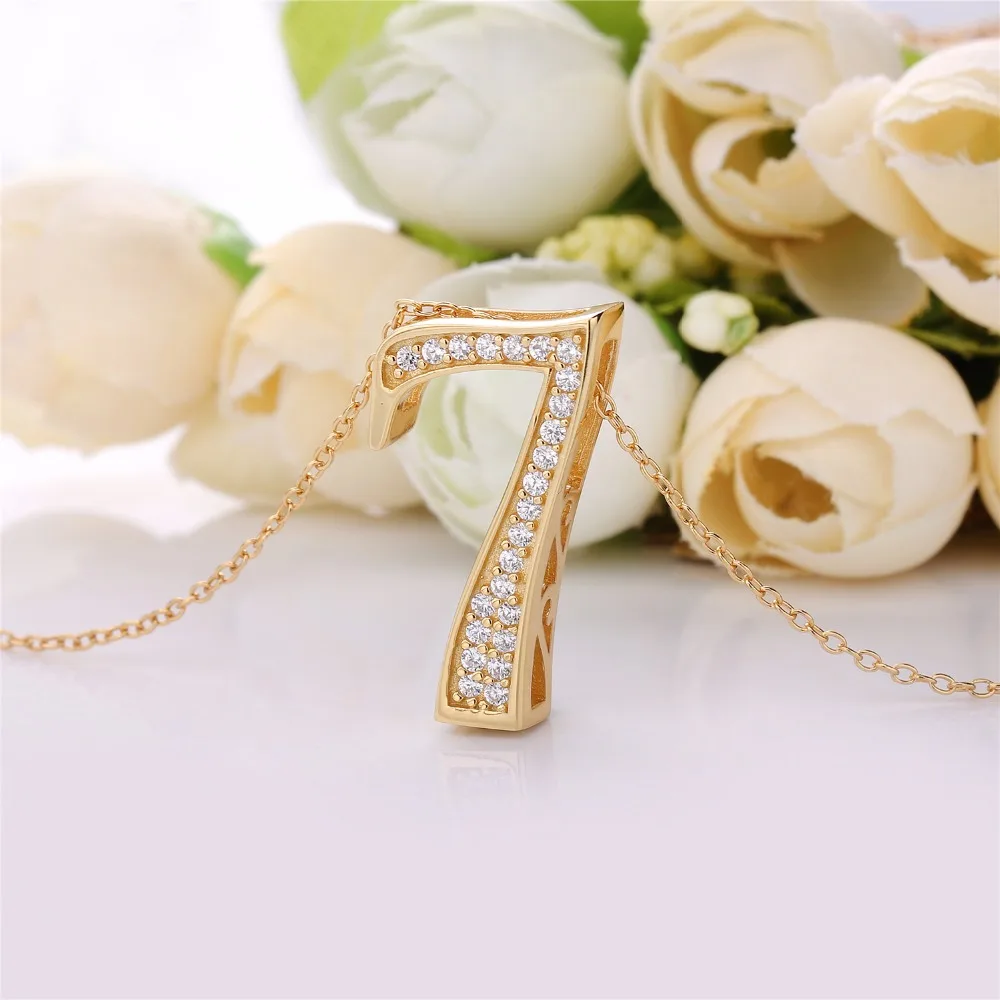 Japan Popular Jewelry 925 Sterling Silver Number 7 Pendant Necklace For Women SIlver Letter Necklace 18K Gold Jewelry