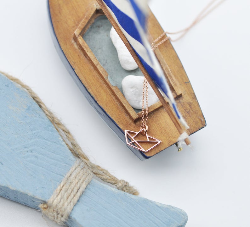 Small Origami Sailboat Necklace Navy Nautical Geometric Ocean Paper Sail Boat Ship Pendant Chain Necklaces for Women Jewelry