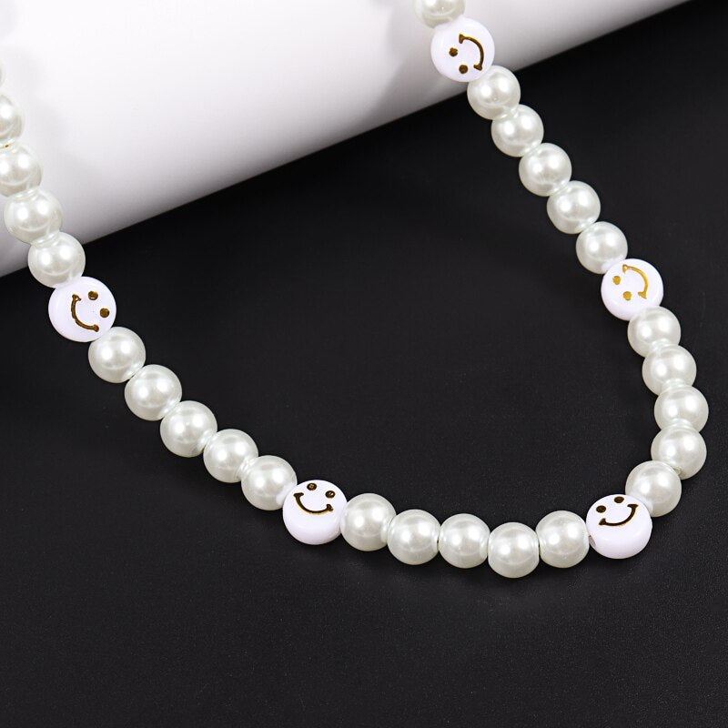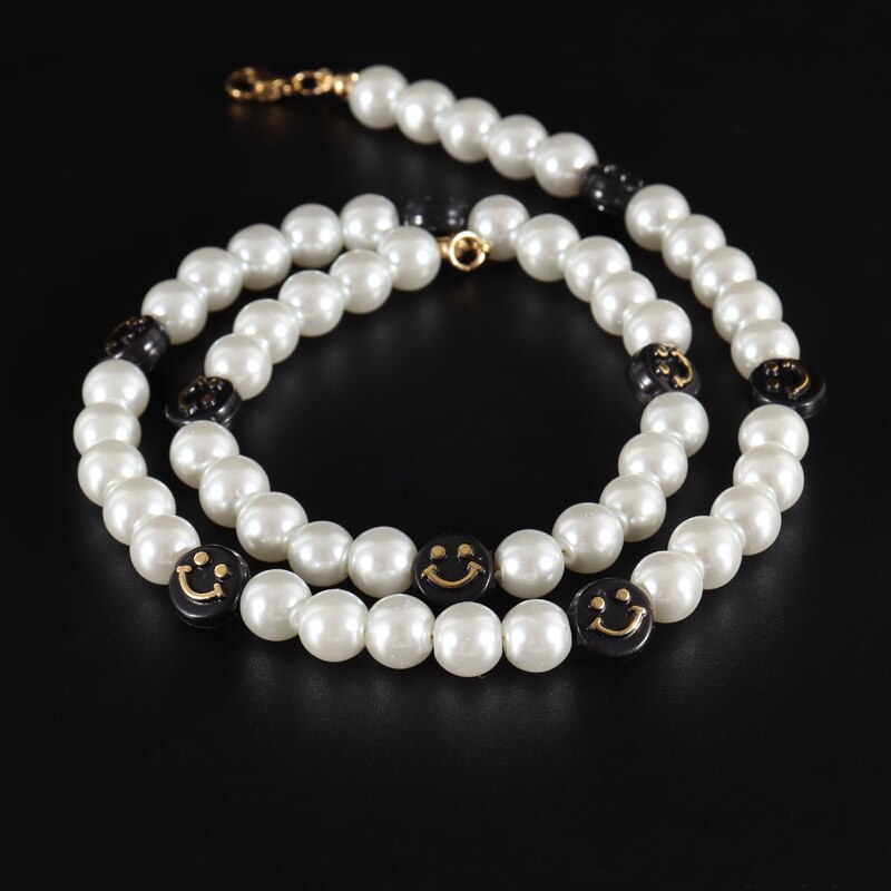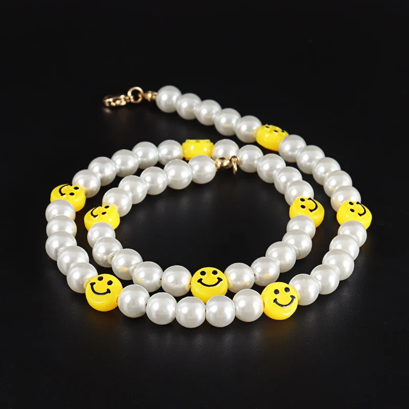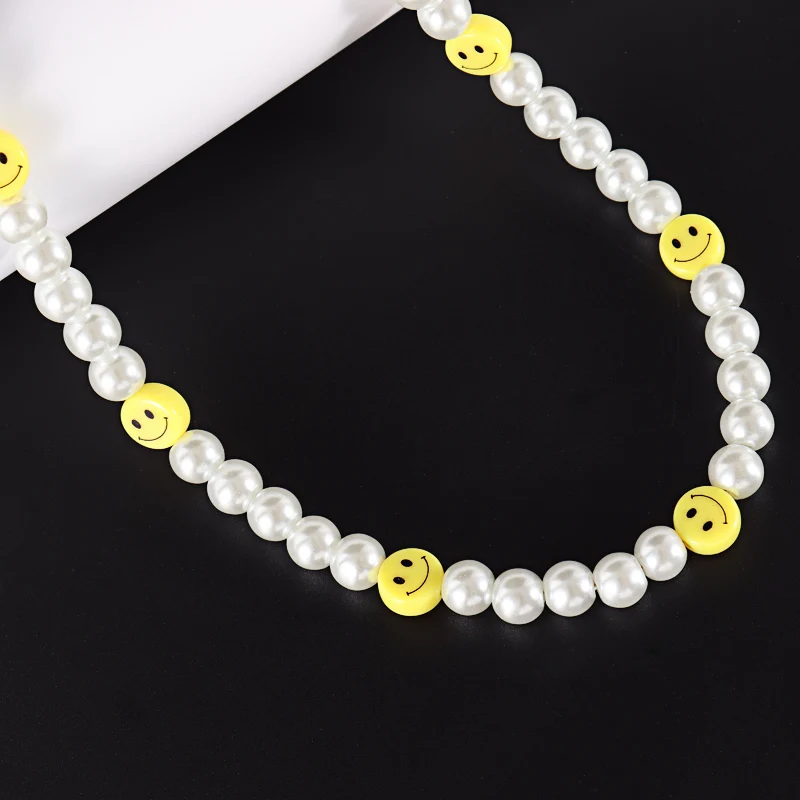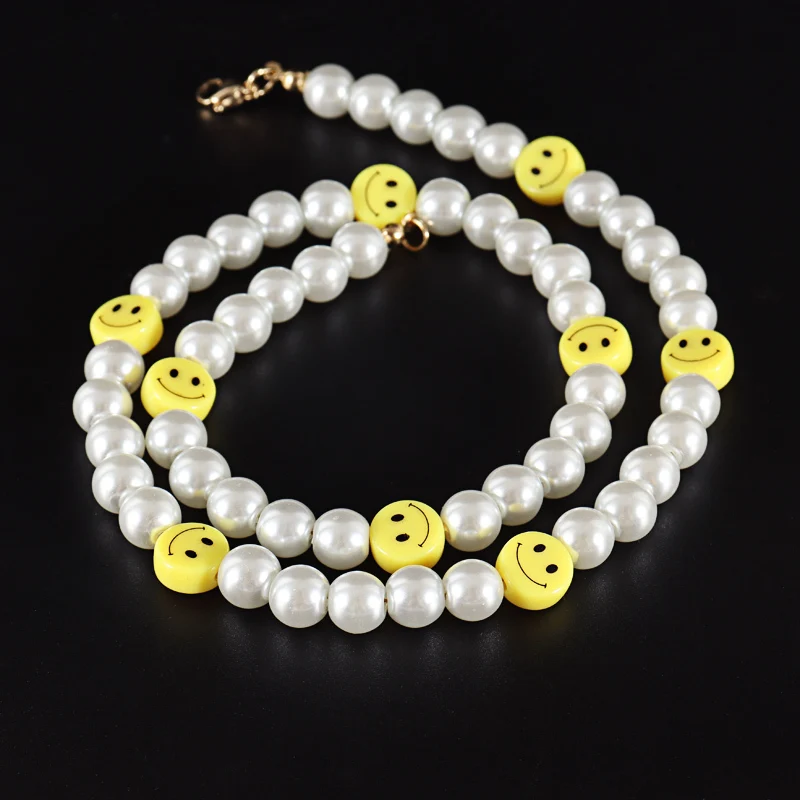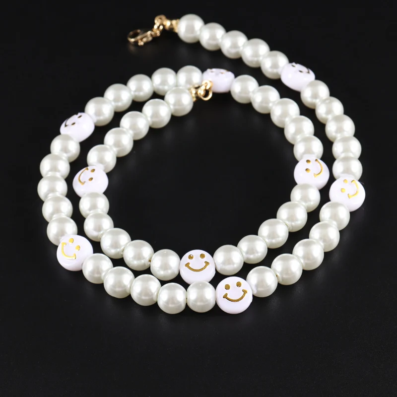 Smile Face Bead Chain Necklace Women 2021 Cute Happy Face Strand Simulated Pearl Bead Necklace For Women Jewelry Gift