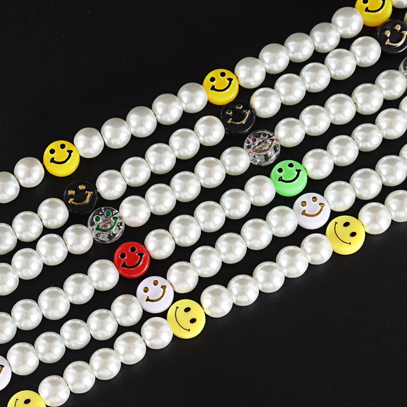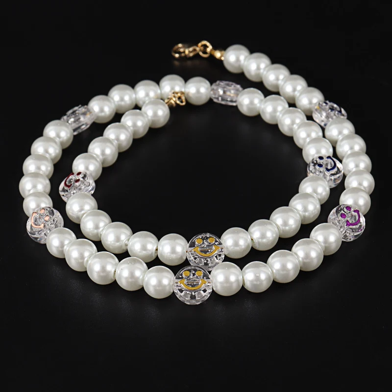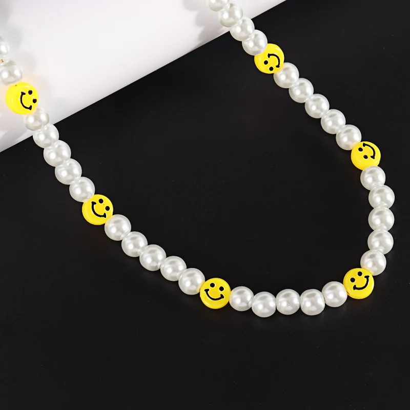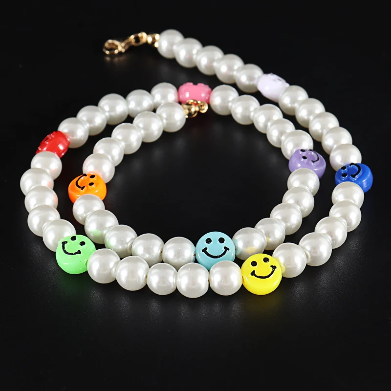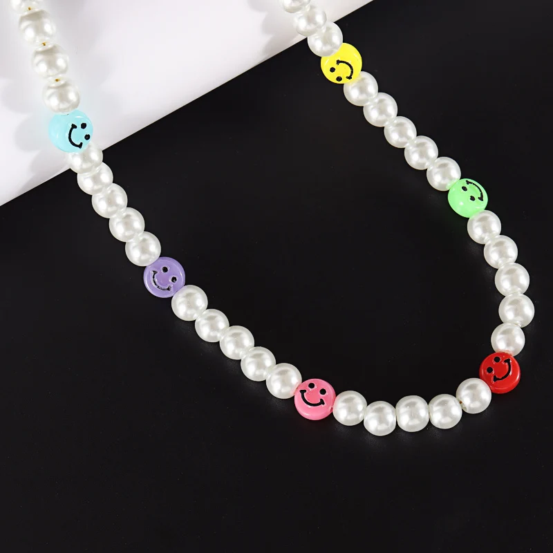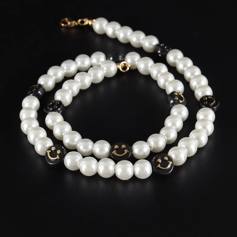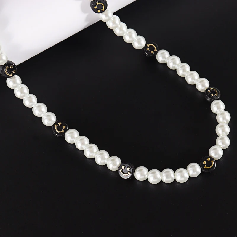 Smile Face Bead Chain Necklace Women 2021 Cute Happy Face Strand Simulated Pearl Bead Necklace For Women Jewelry Gift
