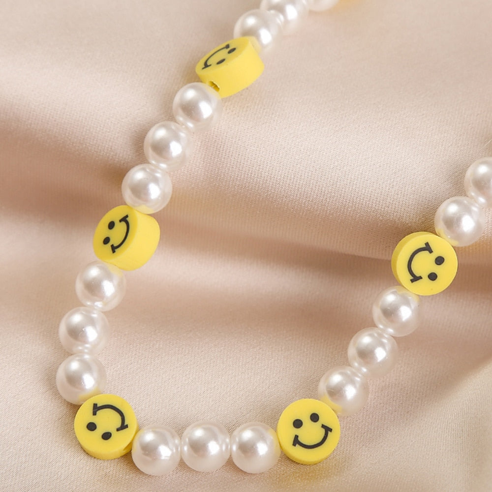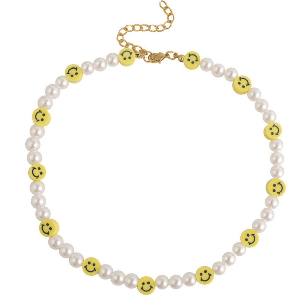 Smiley Face Choker Beads Necklace Irregular Pearl Cute Summer Y2K Collar Pearl Necklace for Teen Girls Women