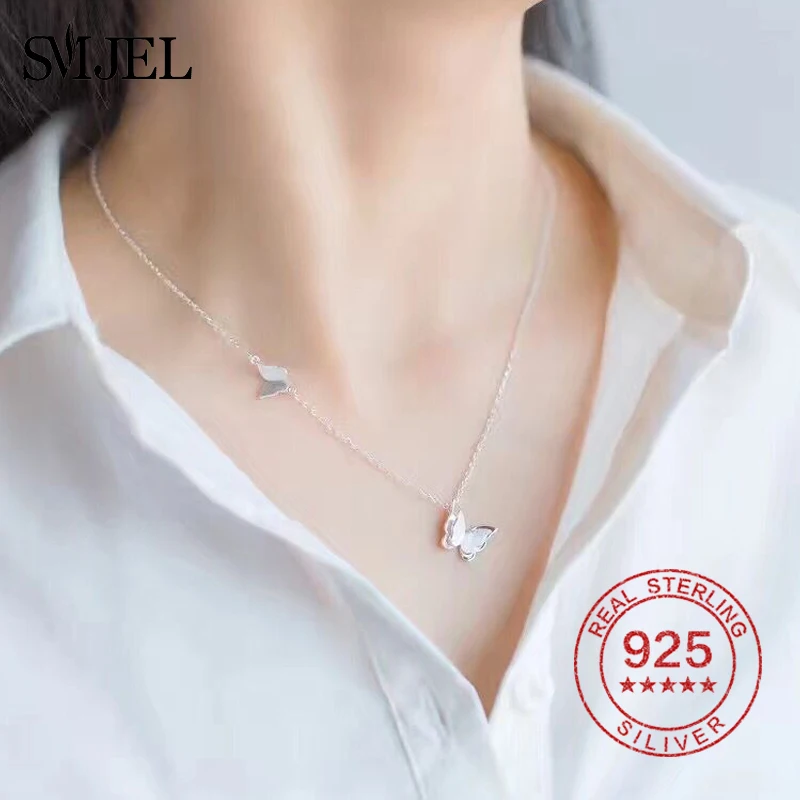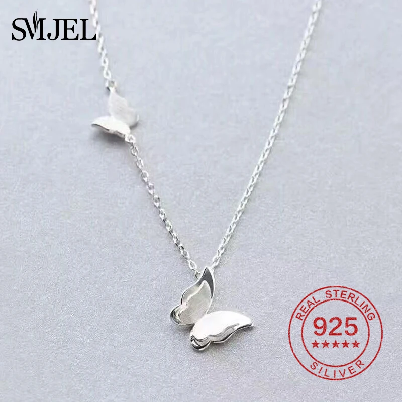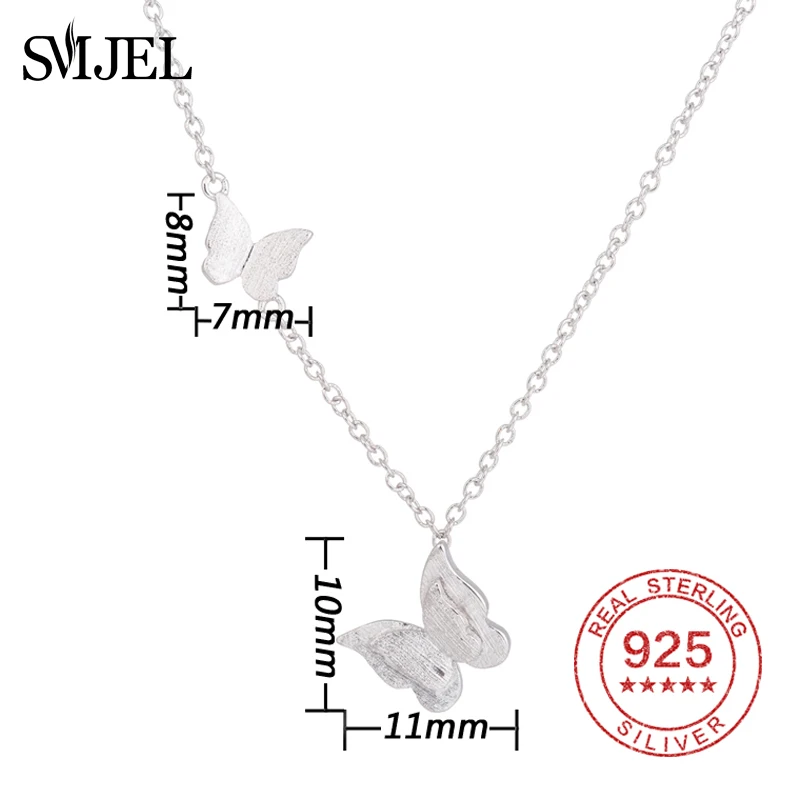 Fashion Jewellery Necklace 925 Sterling Silver Long Chain Animal Butterfly Pendant Necklaces Women bijoux femme
