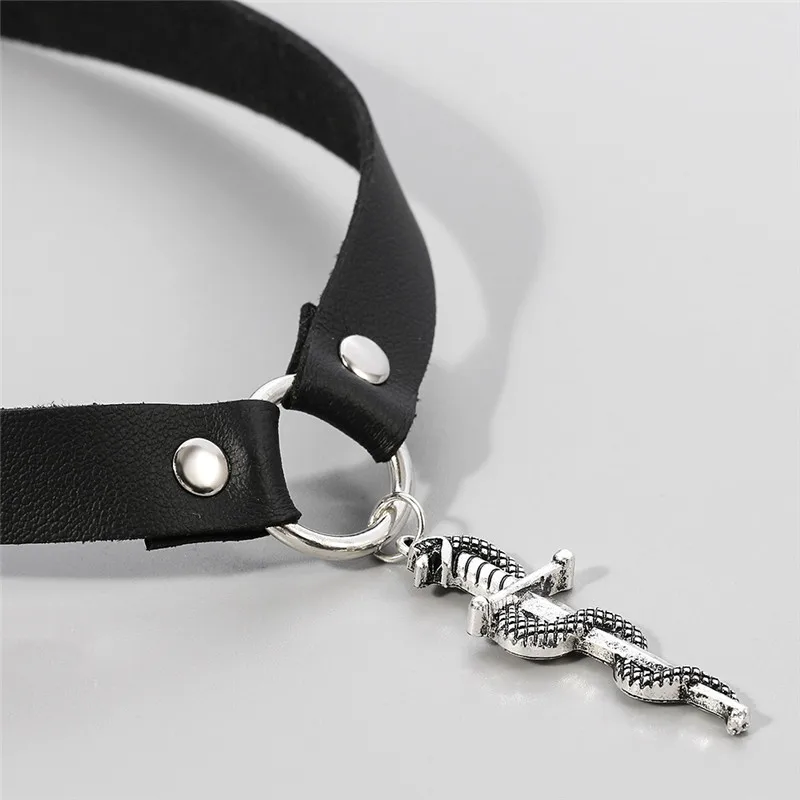 Snake Cobra Pendants Wrapped Around the Sword Choker Necklaces For Women Animal Birthday Bijoux Leather Gift