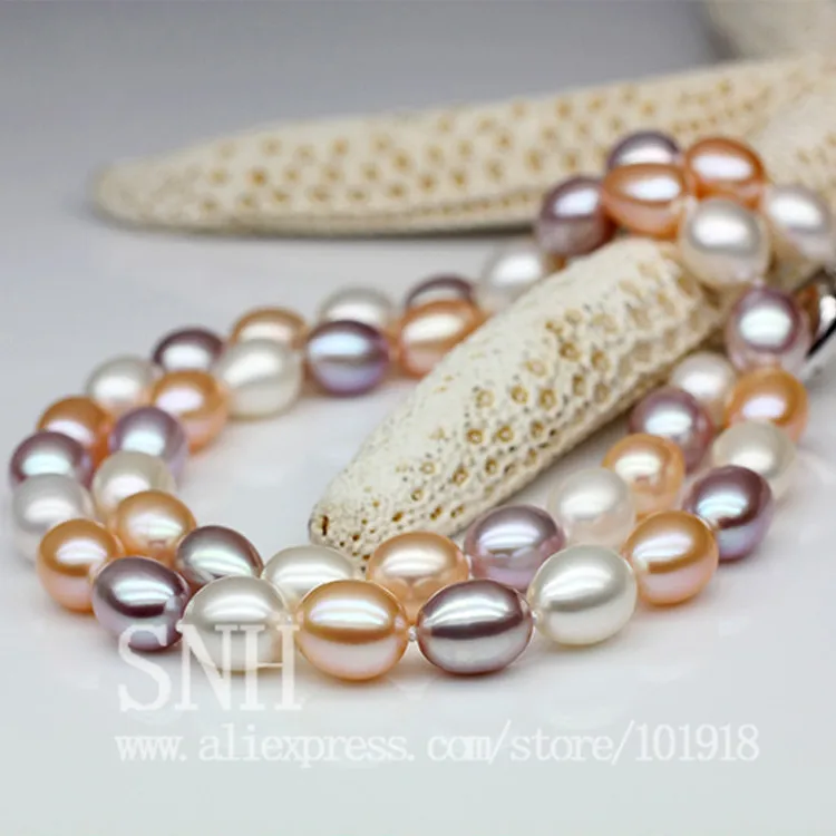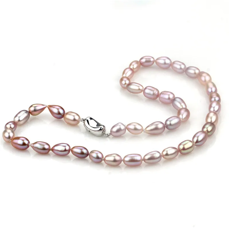 Natural Pearl Necklace Mixed Color Real Pearl Necklace with Sterling Silver Clasp