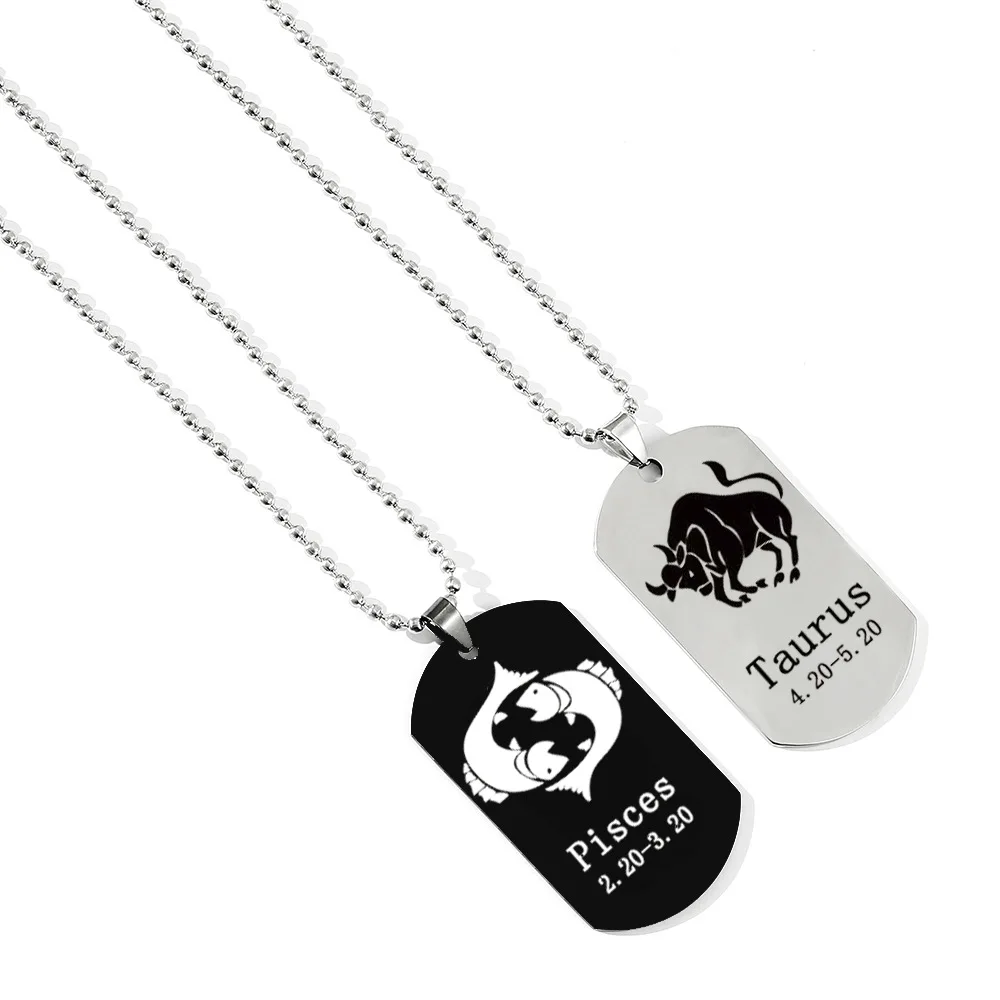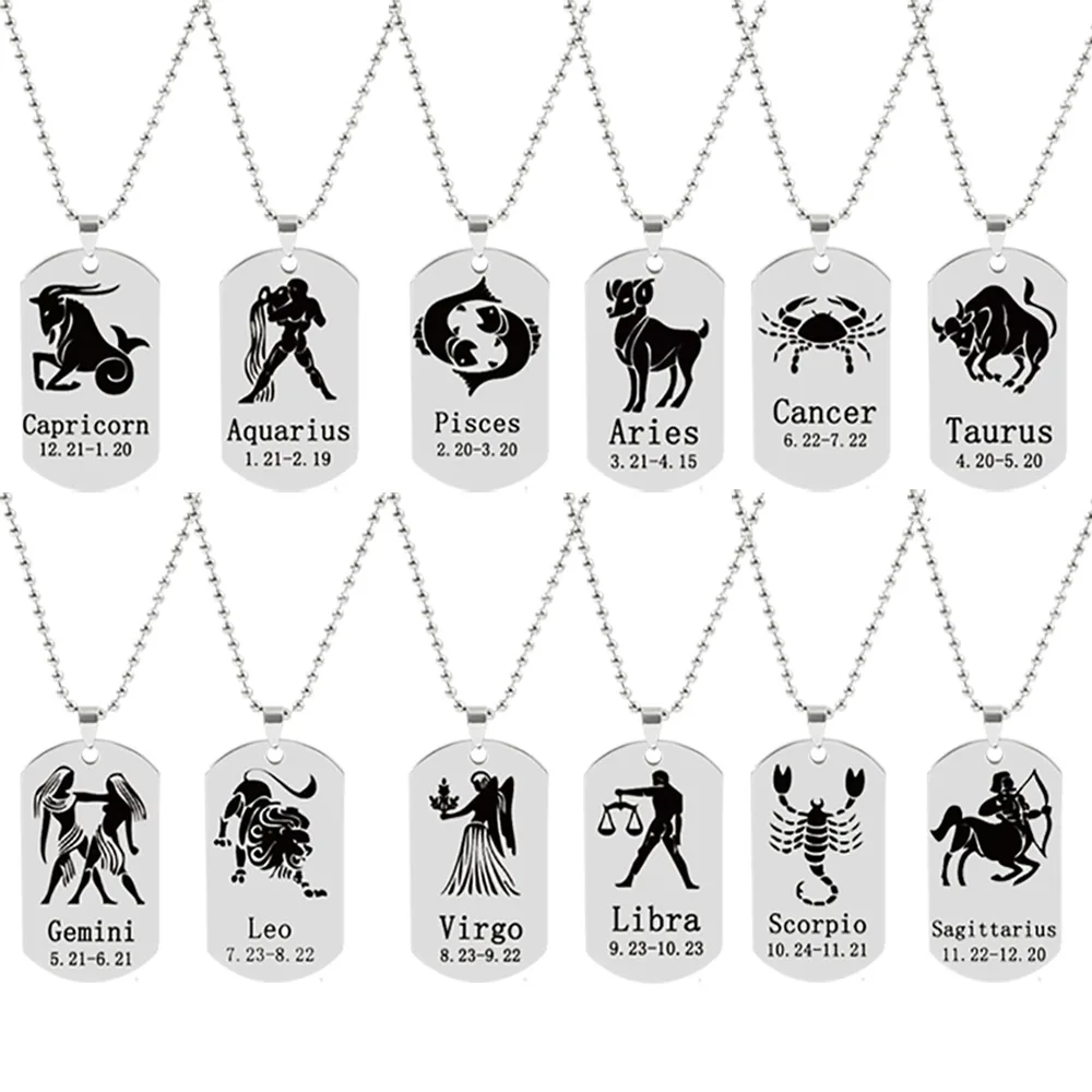 Stainless Steel 12 Horoscope Zodiac Sign Black Color Pendant Necklace Aries Leo 12 Constellation Jewelry