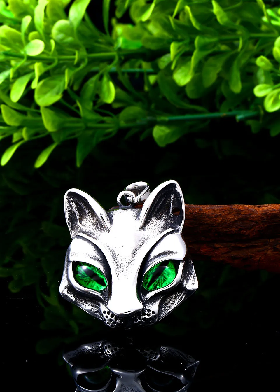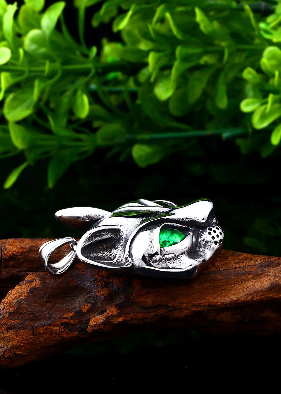 Stainless steel cat head pendant necklace trend men and women personality Cat eye stone titanium steel pendant chain BP8-553