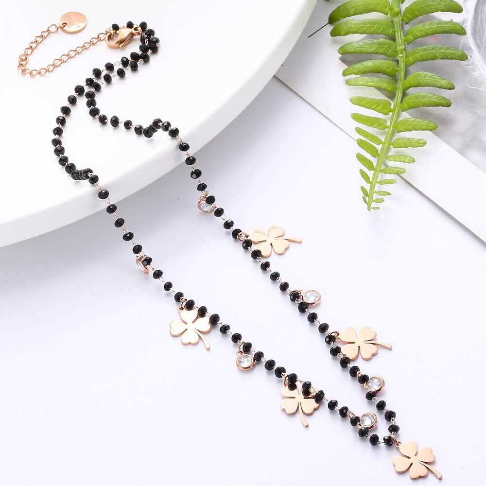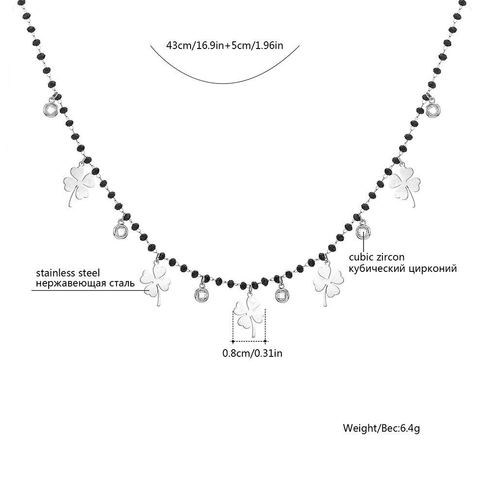 Stainless Steel Clover Charms Necklace For Women Black Crystal Beads Chain Necklace Gift For Friend Female Jewelry 2022 Dropship