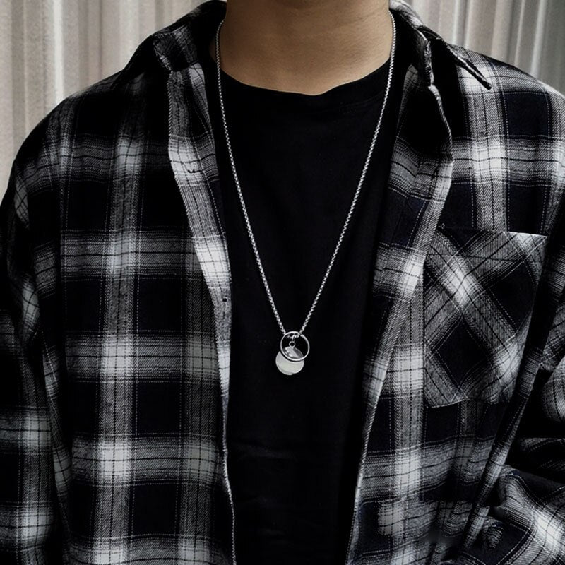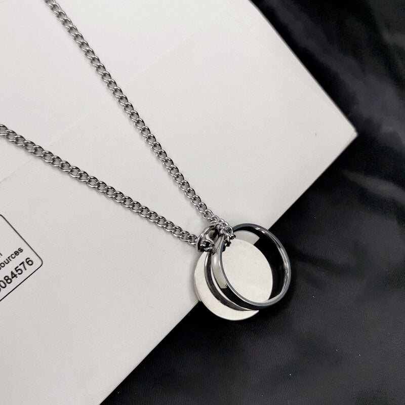Stainless Steel Coin Round Hoop Pendant Necklace for Women Men Casual Hip Hop Neck Chain and Necklace Pendant Jewelry