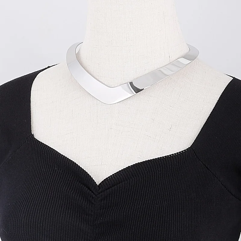 Stainless Steel Collar Necklace V Shape Choker Necklace Gold Color Collares Jewelry Stainless Steel Torques Statement Jewelry