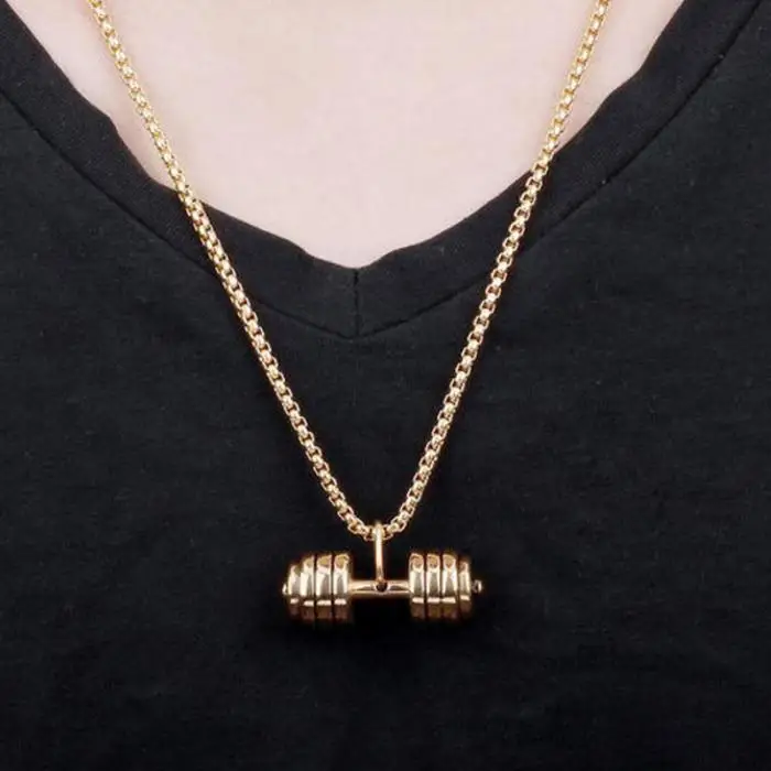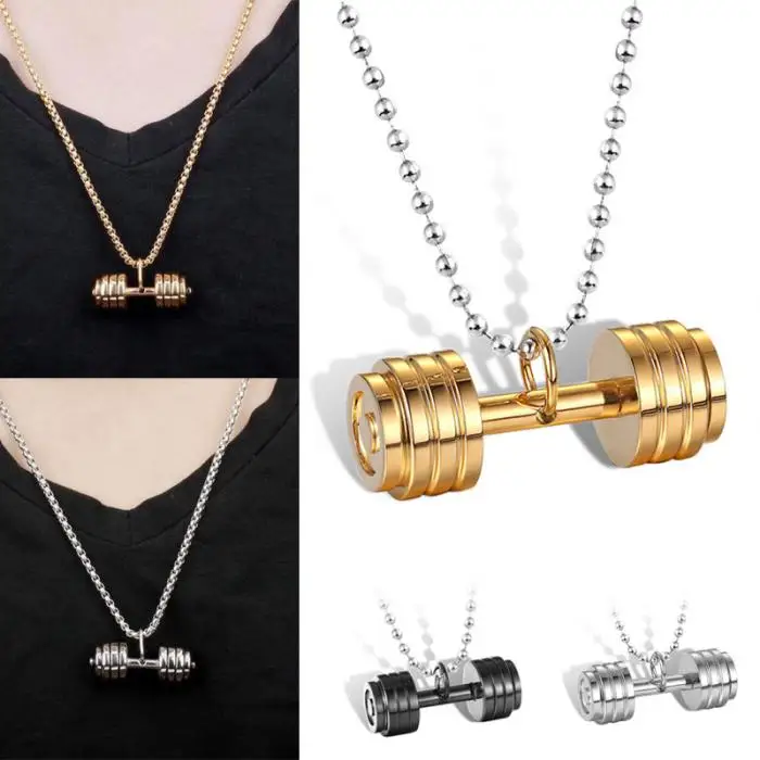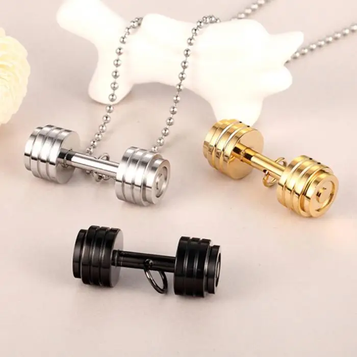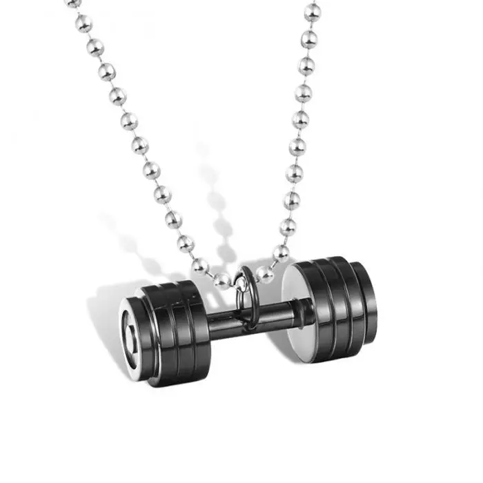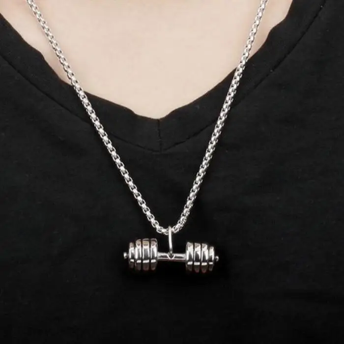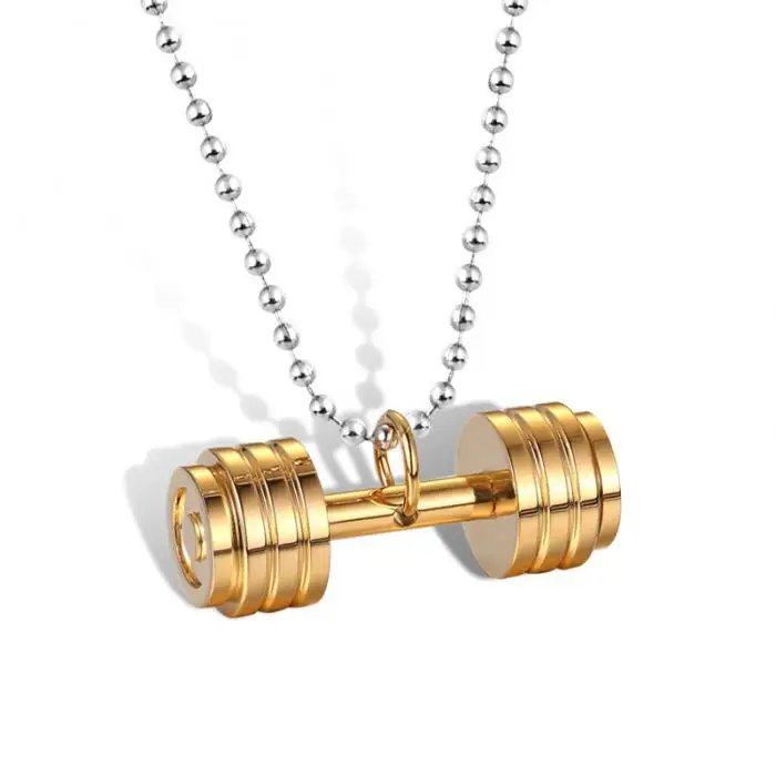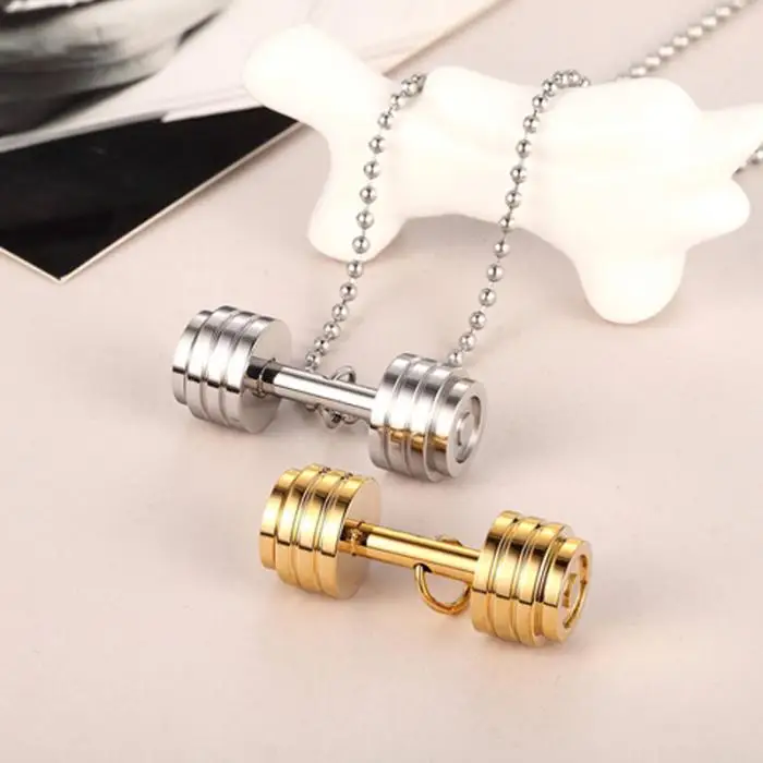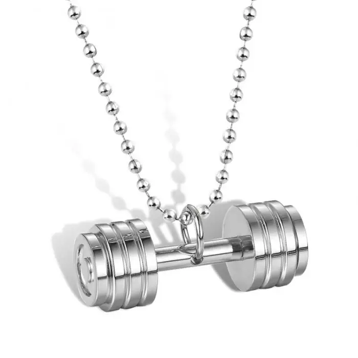 Stainless Steel Dumbbell Pendant Necklace Bodybuilding Gym Barbell Necklace Jewelry Gifts HSJ88