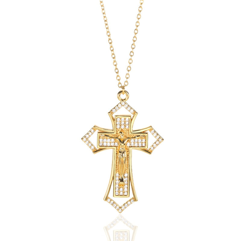 Stainless Steel Gold Cross Chain Necklace For Women Men Hip Hop Cool Accessory Jesus Christ Cross Pendant Necklaces Gift