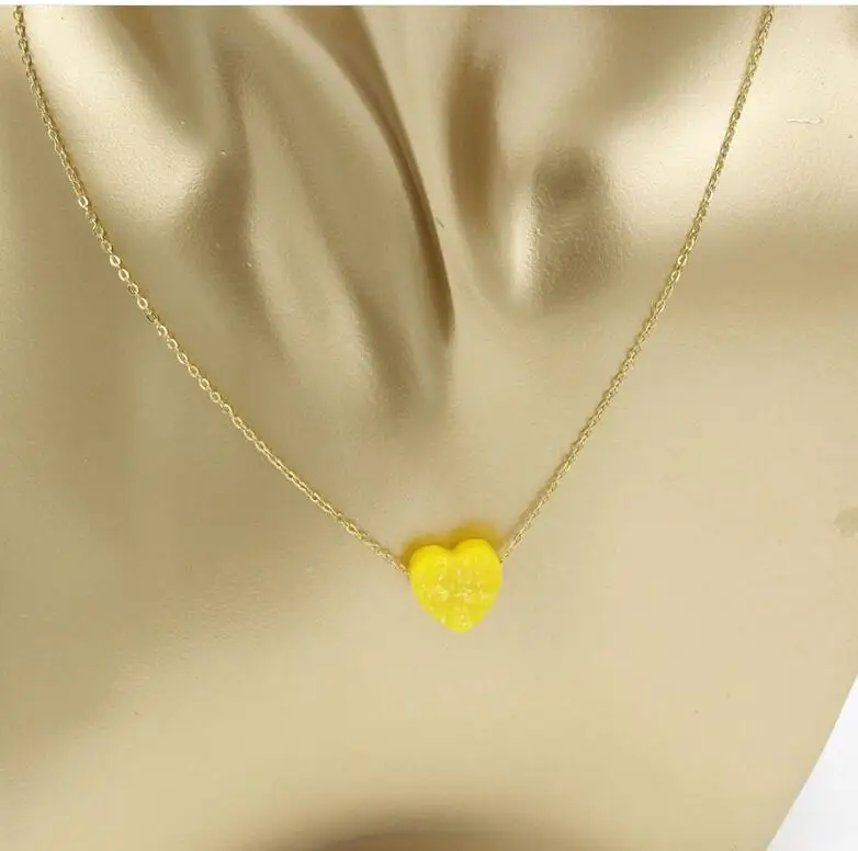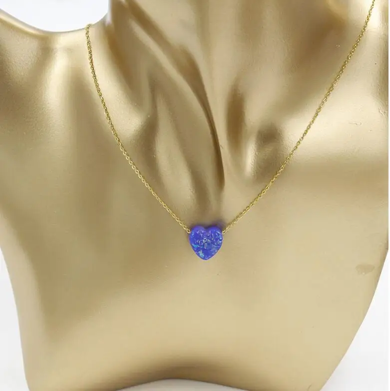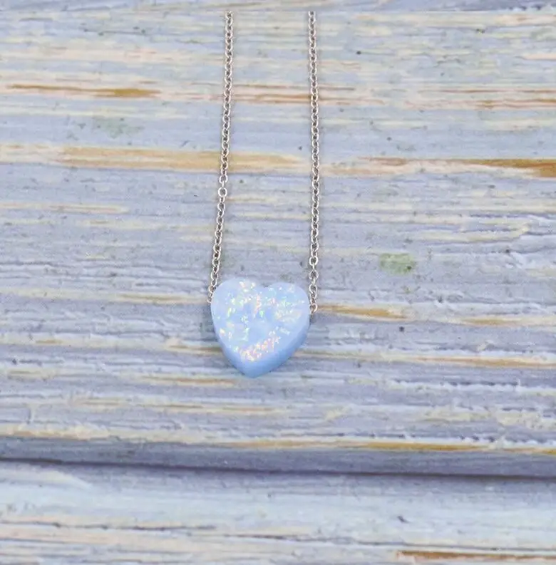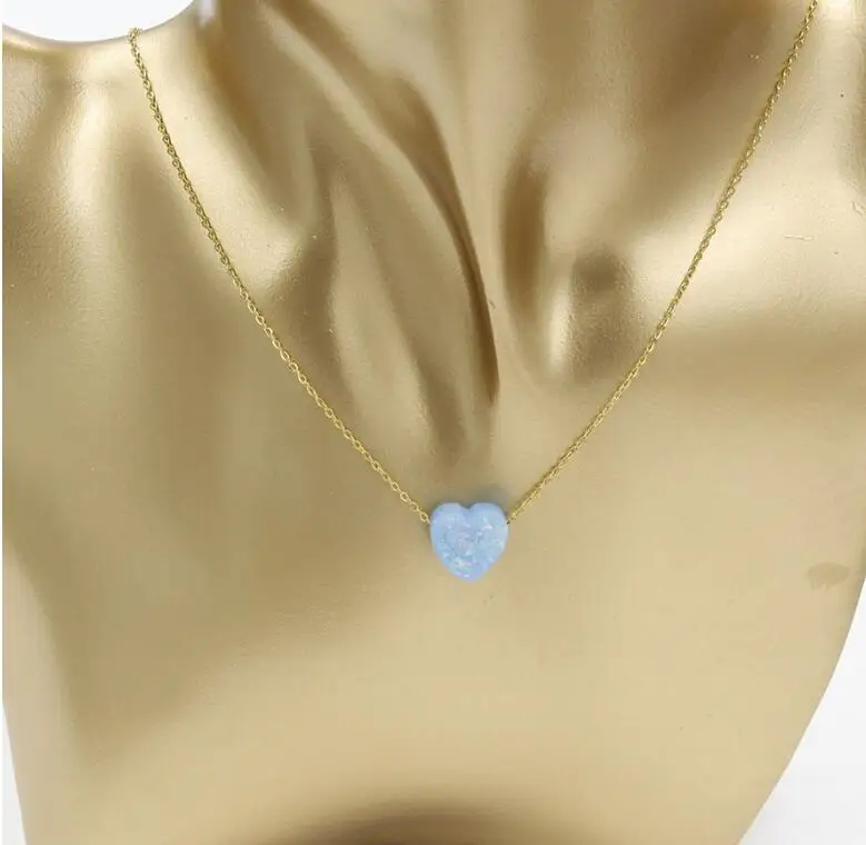 Stainless Steel Gold / silver Color 12mm Opal Heart Pendant Necklace For Women Female Simple Jewelry Gift 45cm