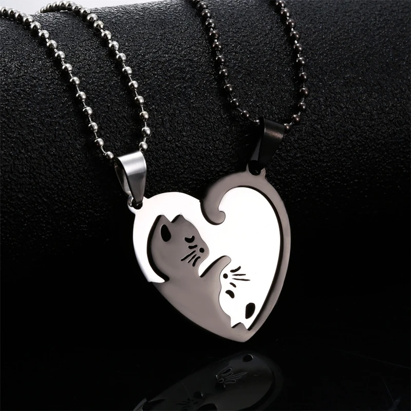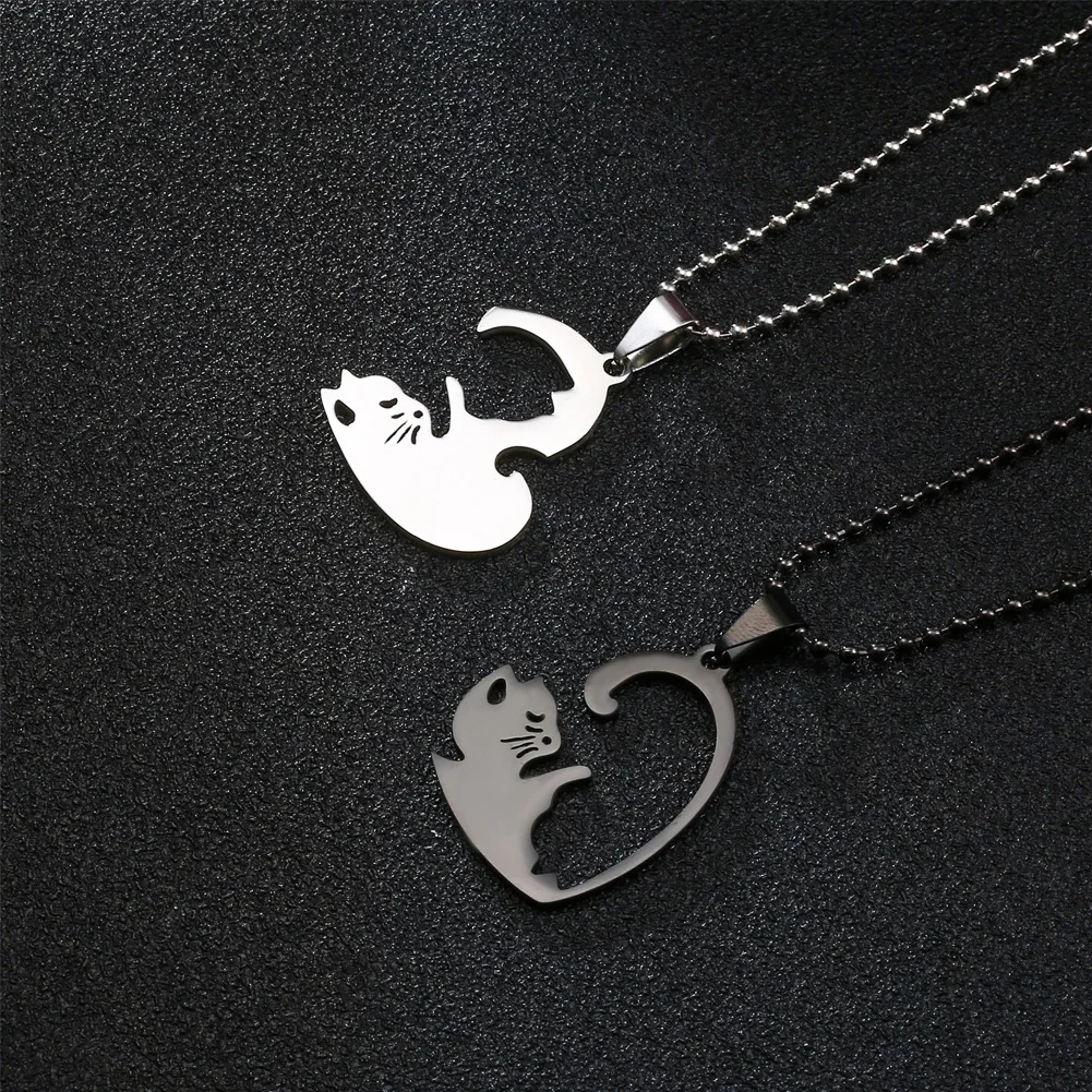 Stainless Steel Hug Cat Stitching Pendant Lovers Necklace Trend 2022 Heart Couple Necklace Men Women Jewelry BTS-669