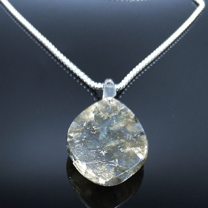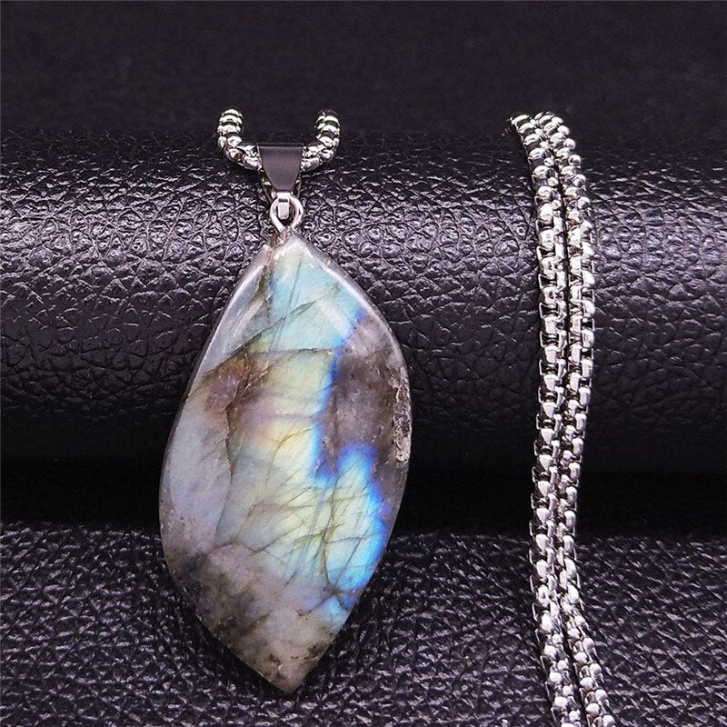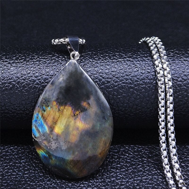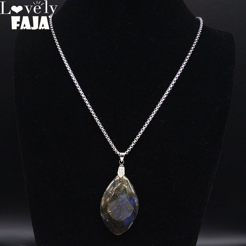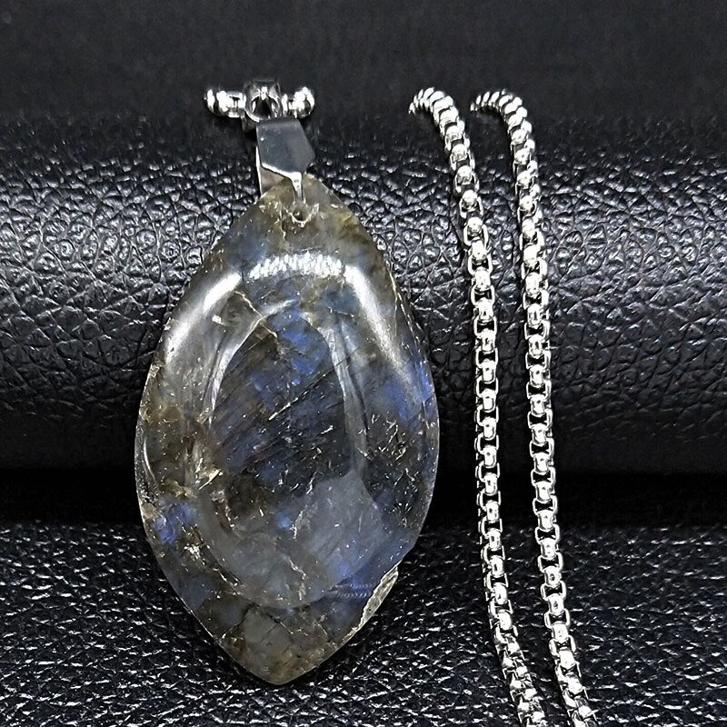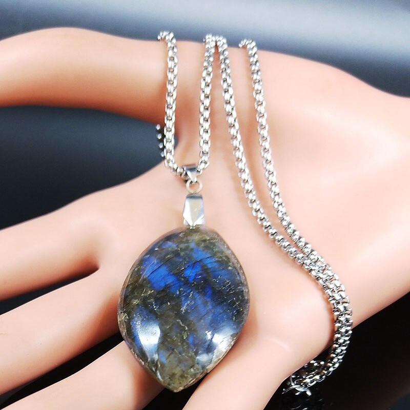 Stainless Steel Labradorite Pendant cabochon Irregular shape strong shine labradorite pendant Necklaces Jewelry joyeriaNG70S04