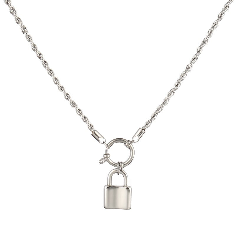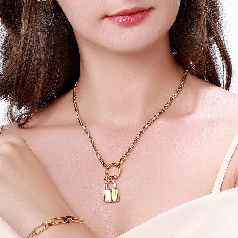 Stainless Steel Necklace Long Chain Necklace For Women Twist Chain Necklace Hollow Heart Charms Pendant Necklace Jewelry Gift