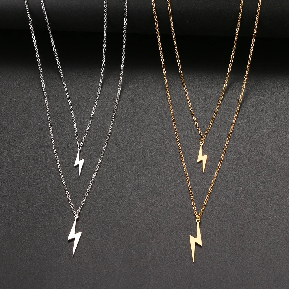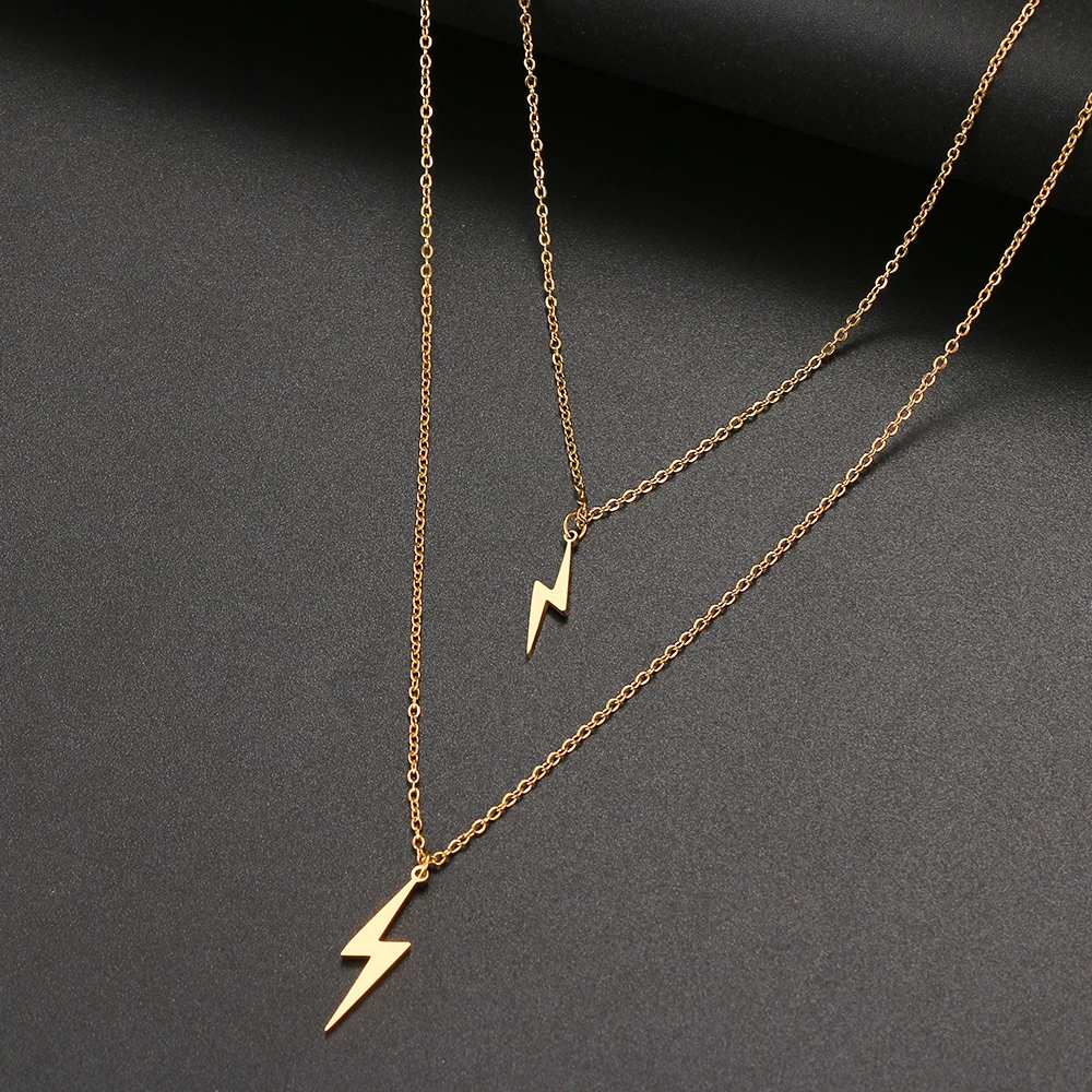 Stainless Steel Necklaces Pendant Multi-layer Style Lightning Chain Necklace For Women Jewelry Party Friend Gifts NEW