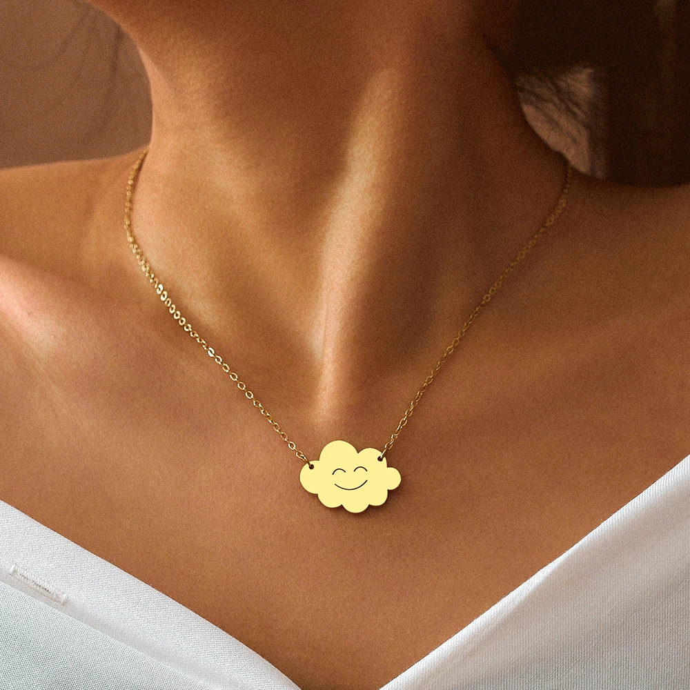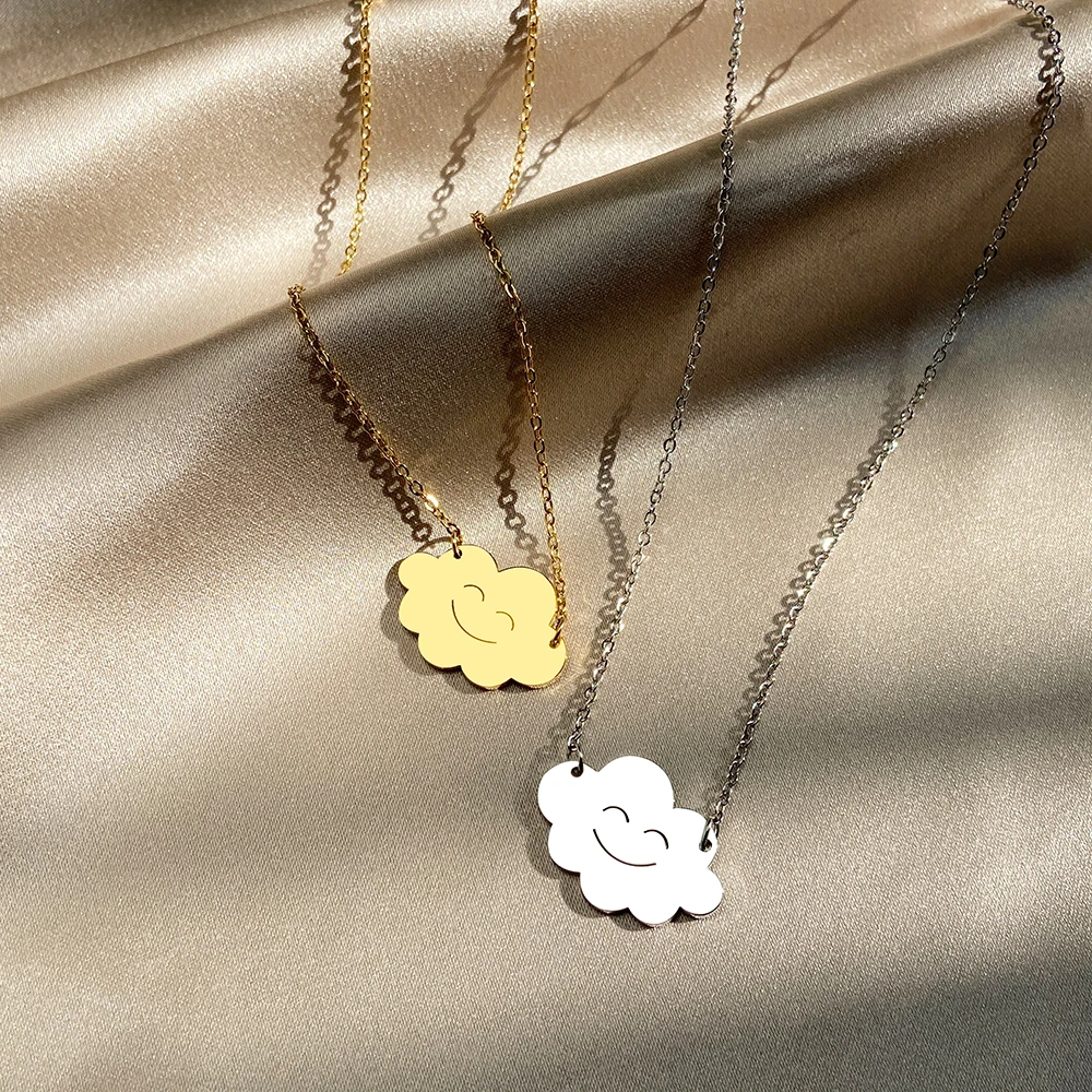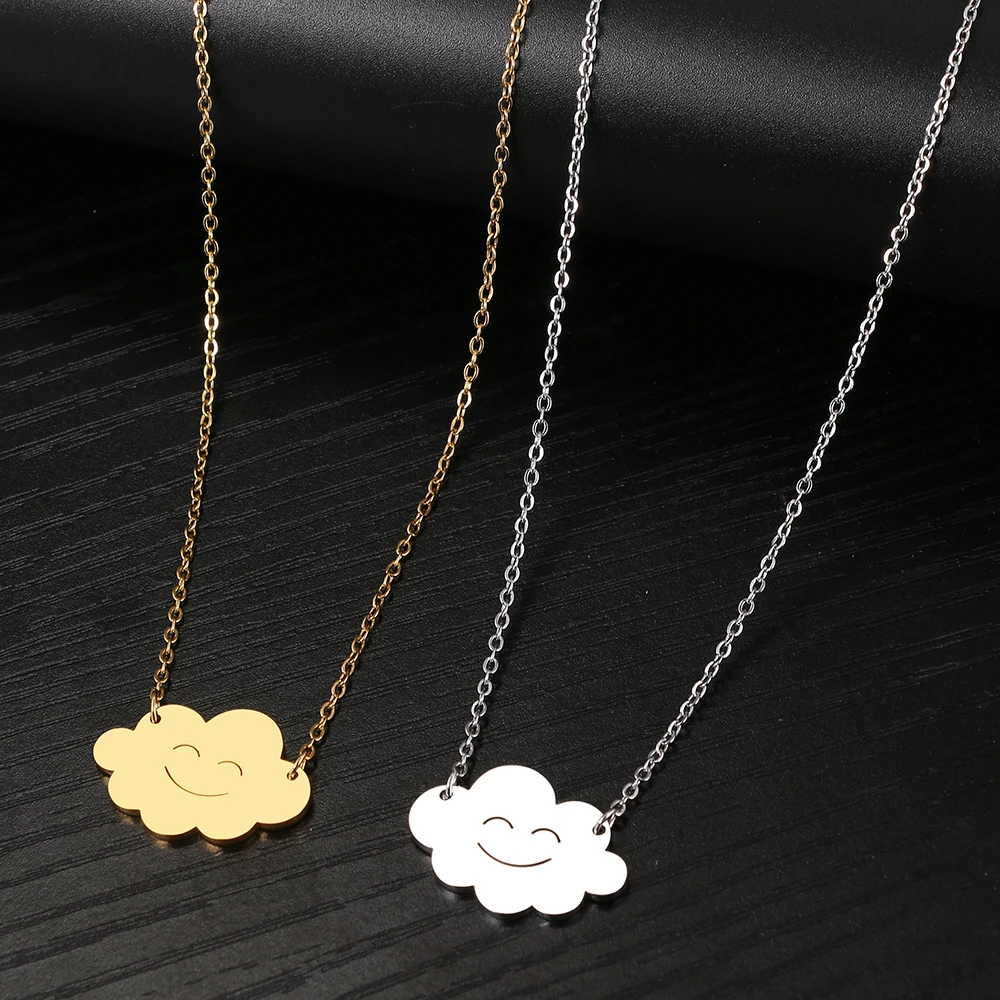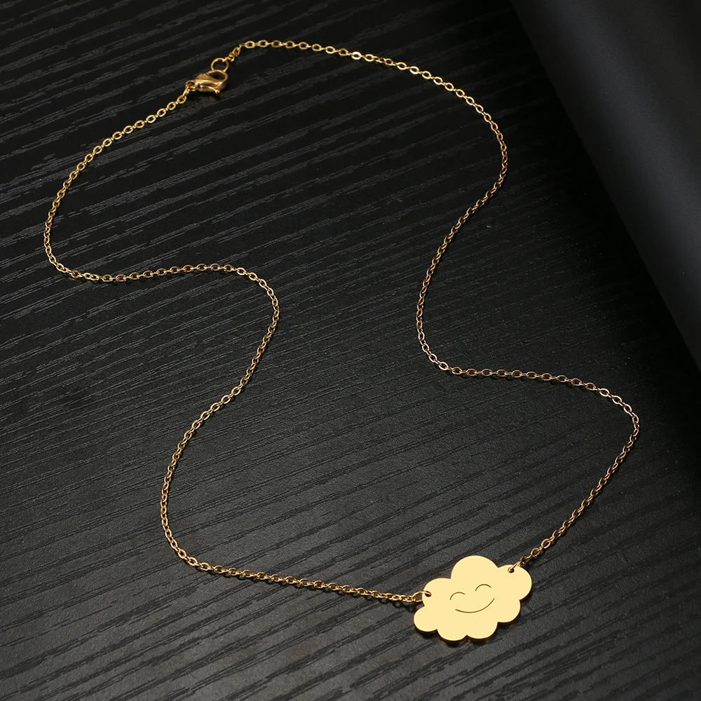 Stainless Steel Necklaces Weather Series Smiley Cloud Pendants Chain Collar Necklace For Women Jewelry Party Gifts 1Pcs