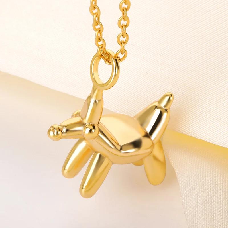 Stainless Steel Poodle Balloon Dog Animal 3D Charm Necklace Balloon Puppy Dog Pendant Necklace for Women Girls Teens Girlfriends
