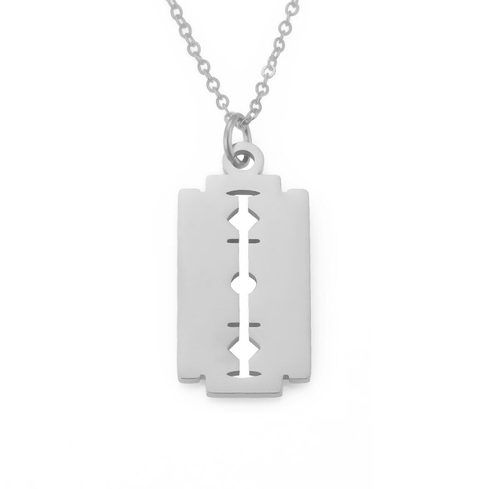 Stainless Steel Razor Blades Pendant Necklaces Boys And Girls Sweater Necklaces Creative Personality Blade Necklace Jewelry