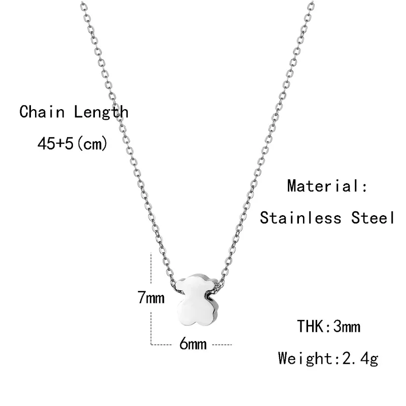 Stainless Steel Trend Cute Bear Heart Star Necklace For Women Link Chains Mini Animal Pendant Female Jewelry Christmas Gift