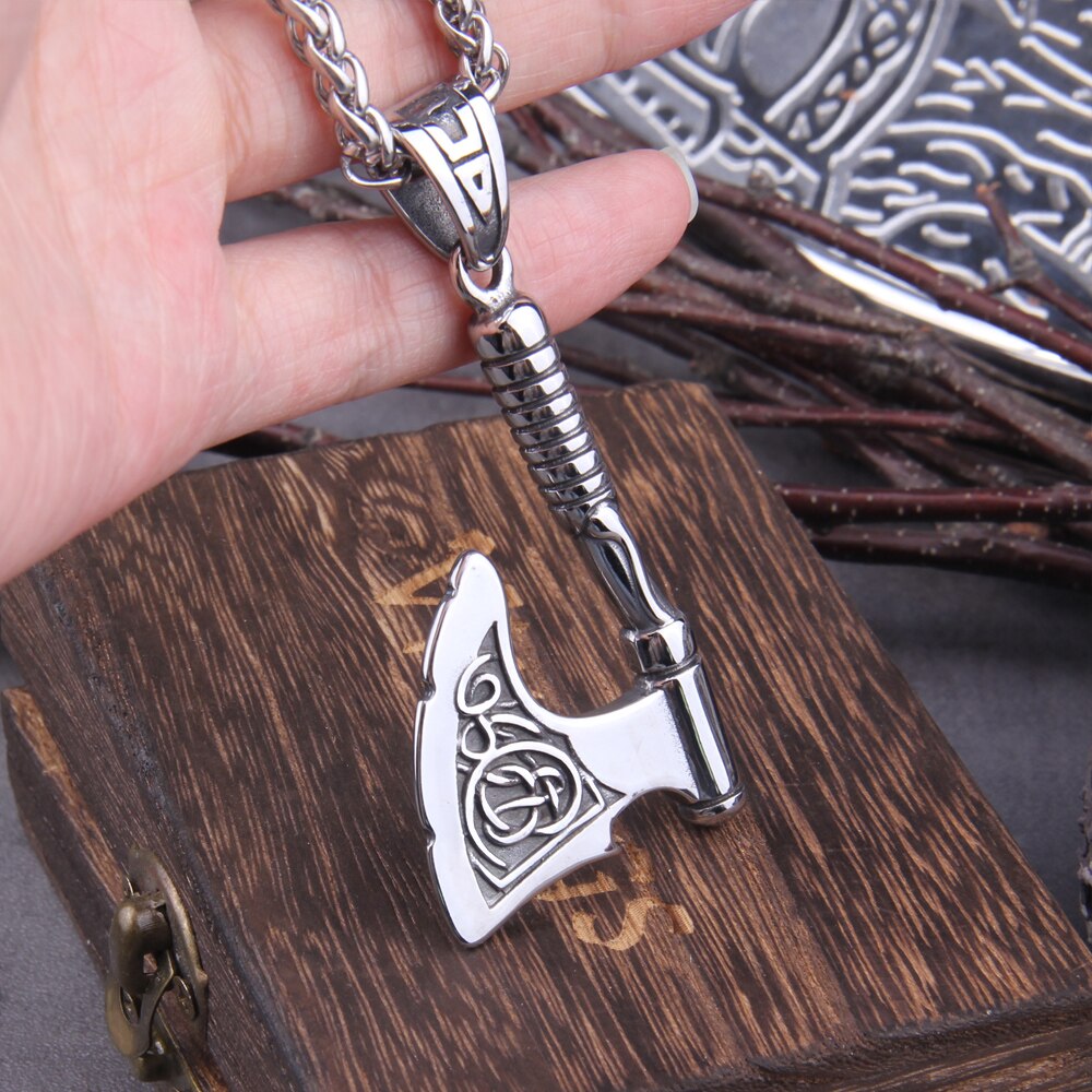 Stainless Steel Viking Axe key bottle opener viking necklace with wooden box as gift