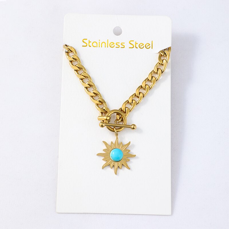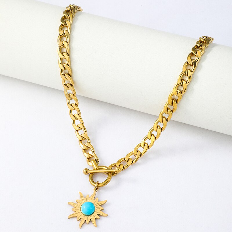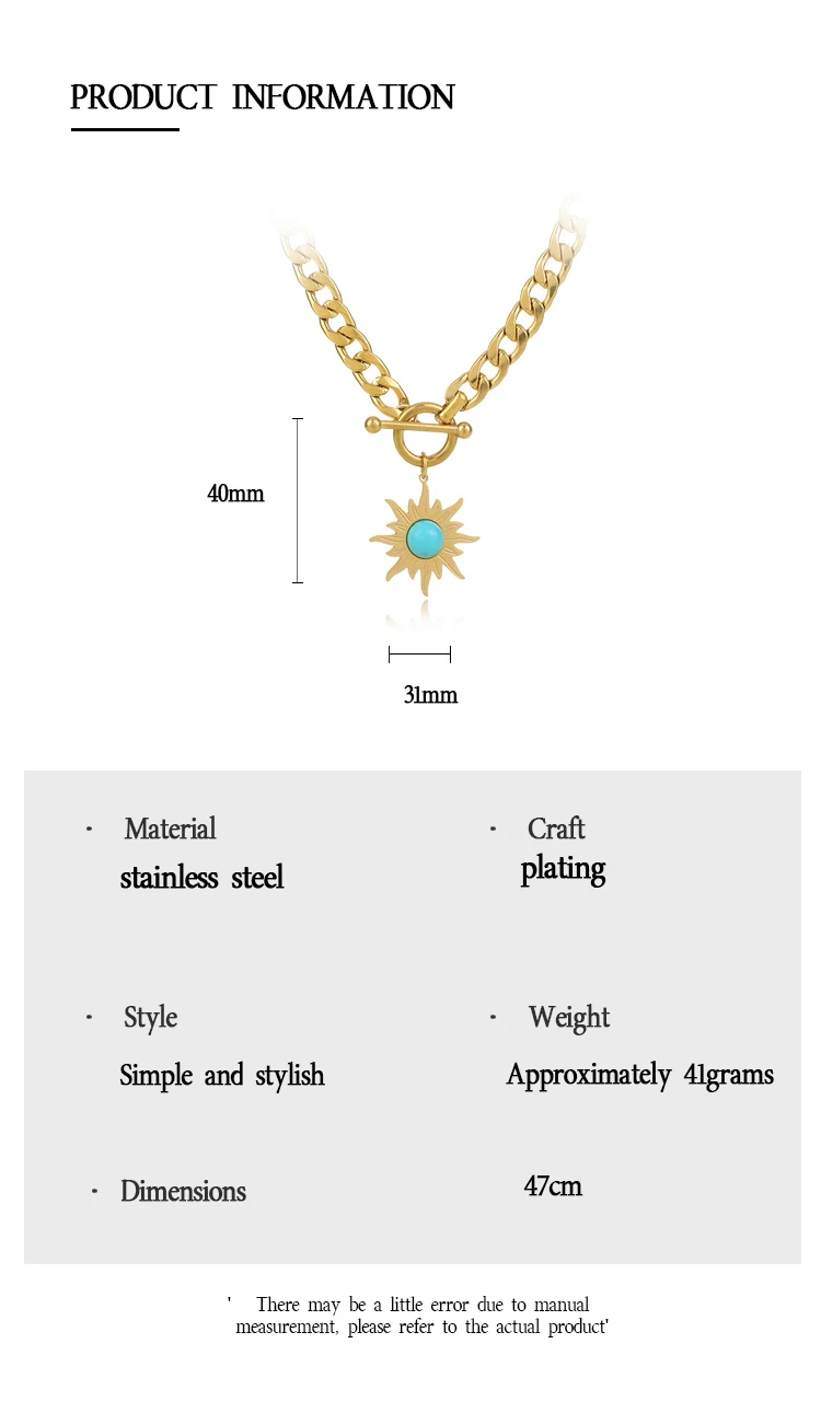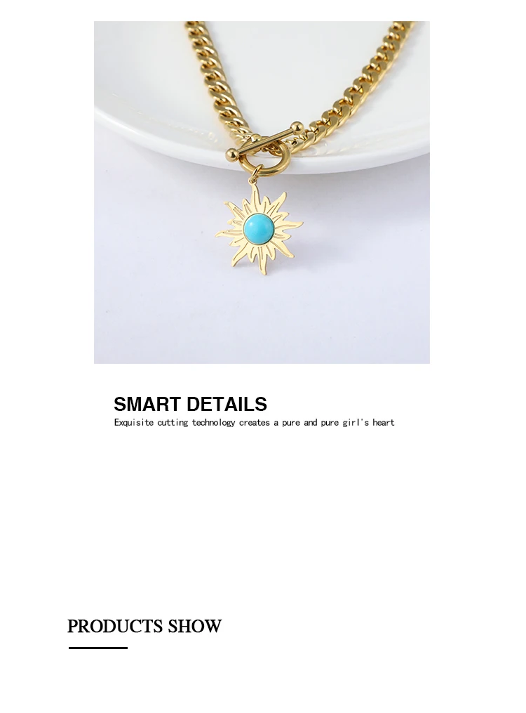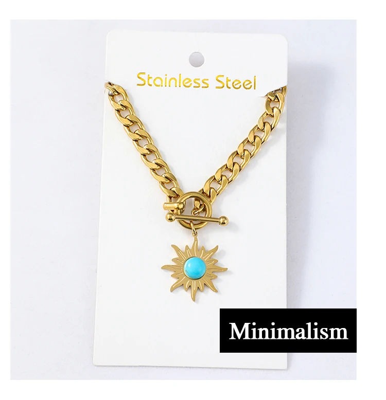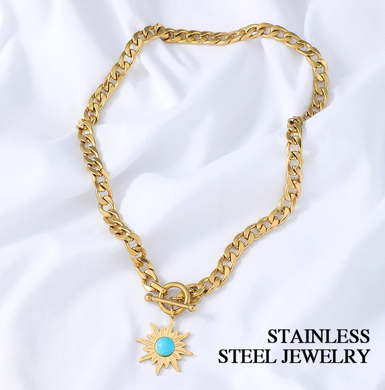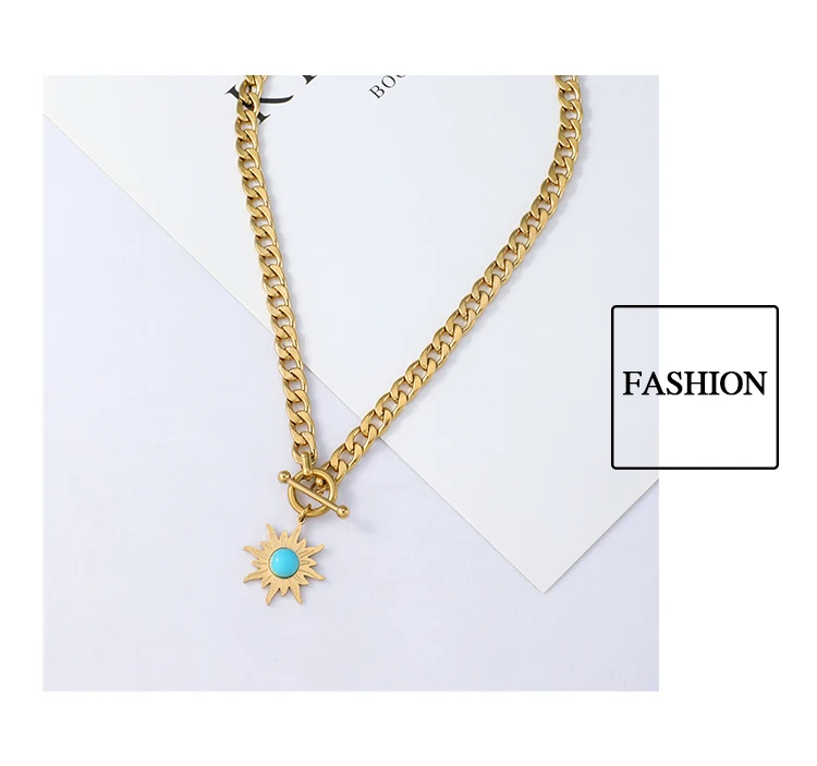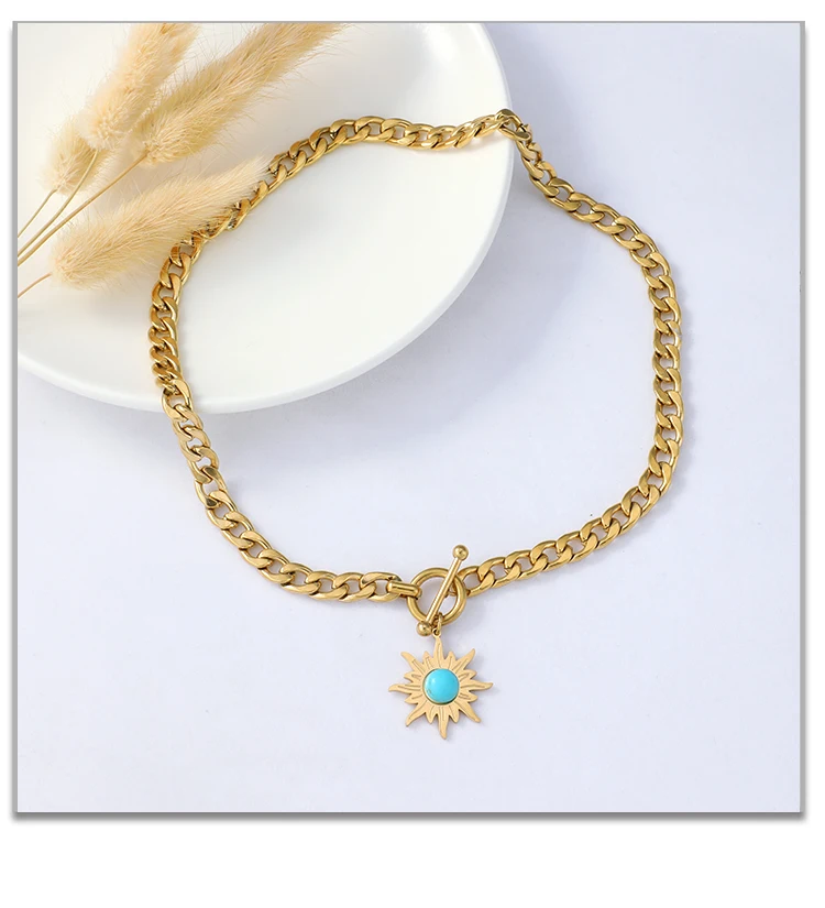 Statement Golden Sun Flower Pendant Chain Necklace for Women 14K Stainless Steel Metal Collar Necklace Jewelry Collier Femme