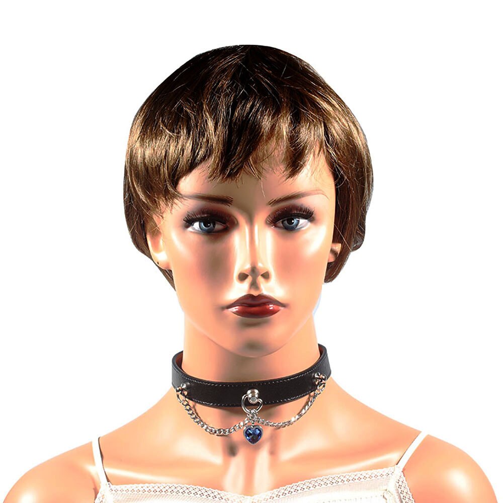 Steel Love Heart Pendant Tassel Chain Button Buckle Punk Leather necklace collar Choker Necklaces 36CM
