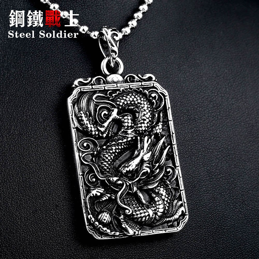 steel soldier Chinese style dragon charm pendant necklace wishes to you stainless steel jewelry