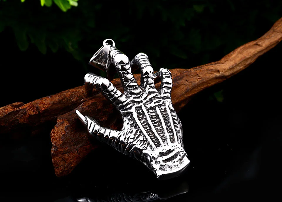steel soldier devil hell skull hand pendant necklace stainless steel punk heavy power chain jewelry