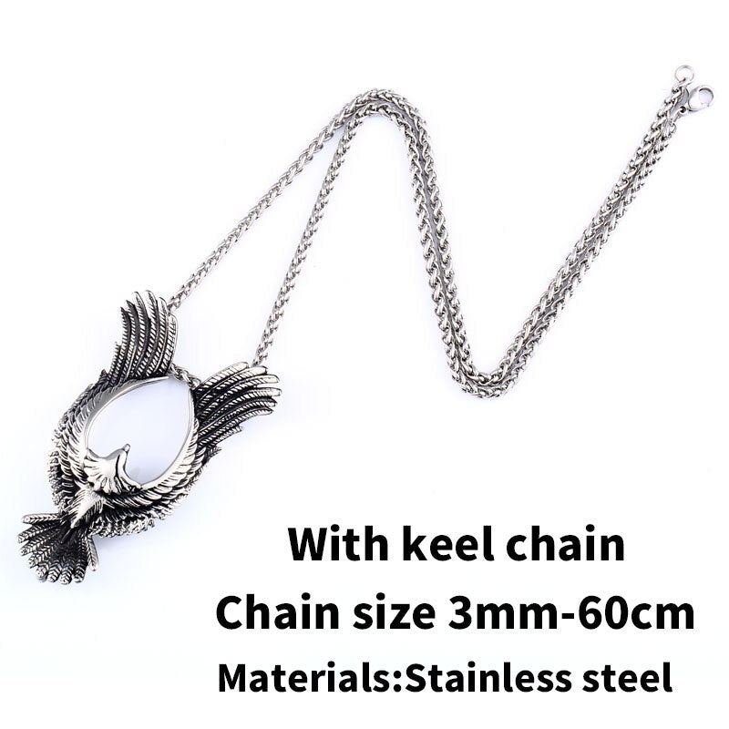 Steel soldier phoenix with huge wing pendant necklace punk biker chain stainless steel material men jewelry
