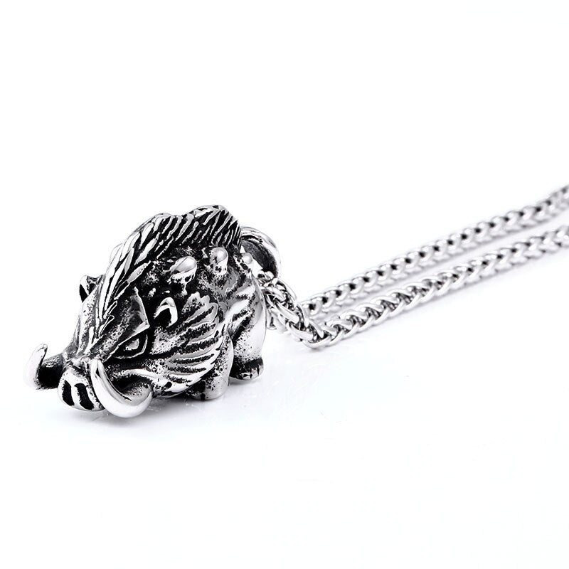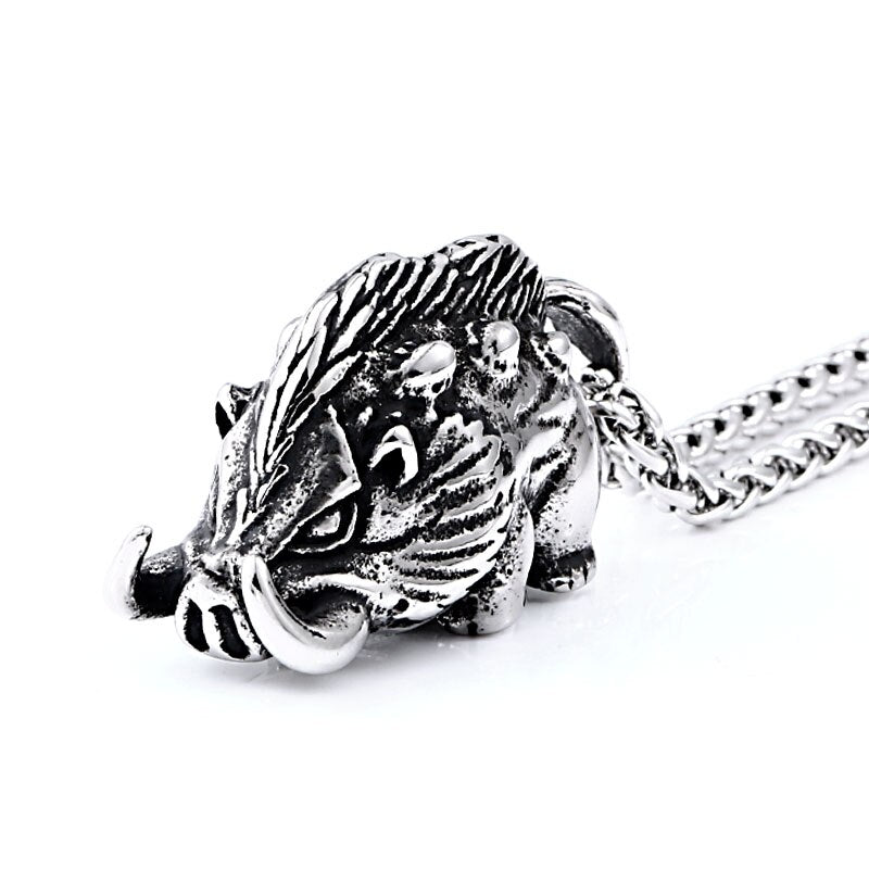 Steel soldier wild boar choker stainless steel 3D detail men punk necklace pendant accessories jewelry