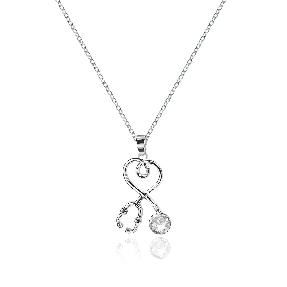 Stethoscope Heartbeat Silver-color Choker Necklace Women Love Heart Necklaces & Pendants Medical Nurse Doctor Lover JewelrGifts