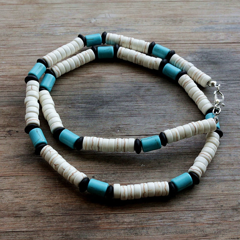 Stone Bead Surfer Necklace Made from white, Black and Blue Beads for men tribal jewelry