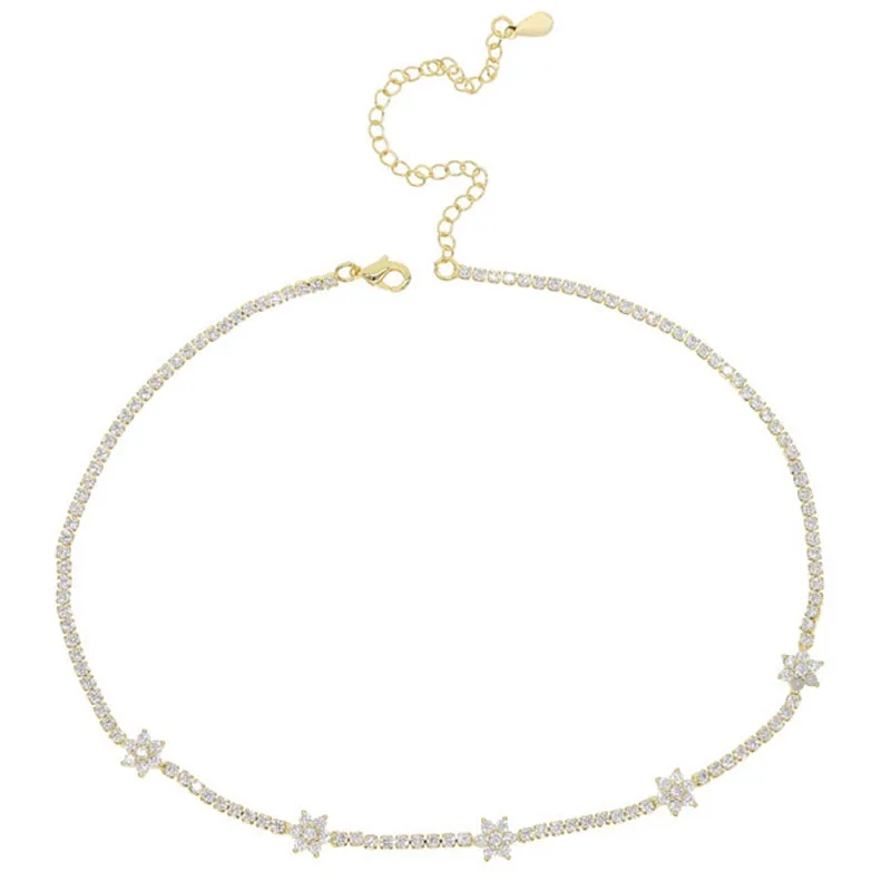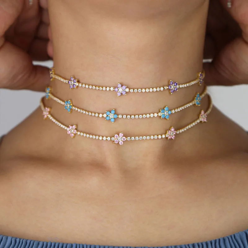 Stonefans Flower Rhinestone Necklace Gold Chain for Women Statment Colorful Flower Necklace Choker Tennis Chain Jewelry