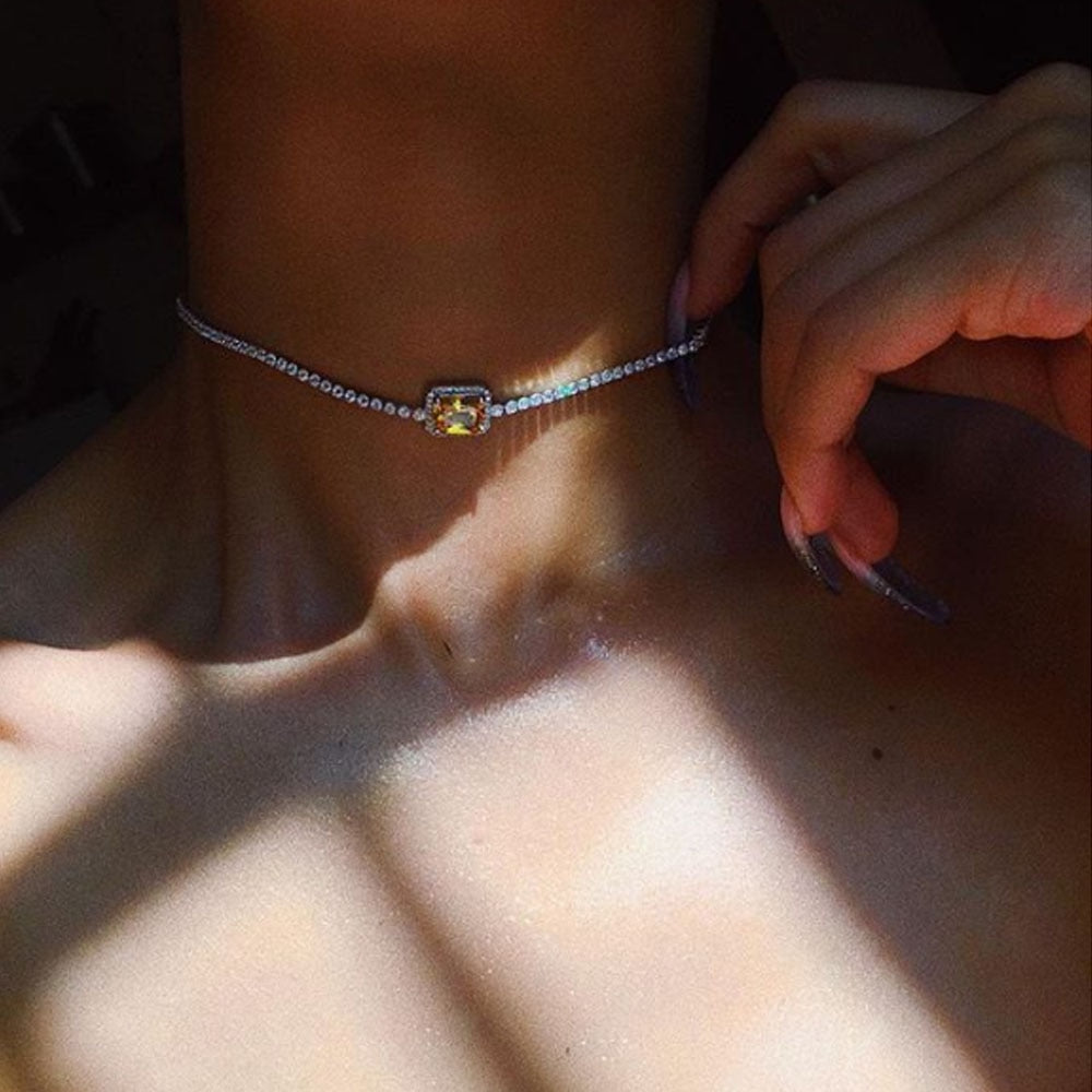 StoneFans Star Crystal Simple Choker Necklace for Women Pink Collana Kolye Bijoux Collares Mujer Gargantilha Collier Gift