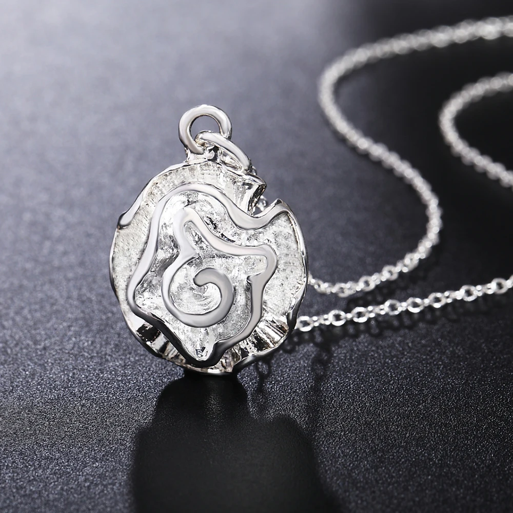 Street 925 Stamped Silver Pretty Rose Flowers Pendant Necklace for Women party wedding Jewelry Popular Gift